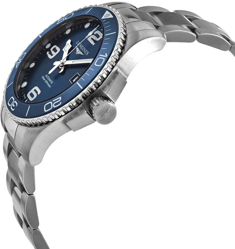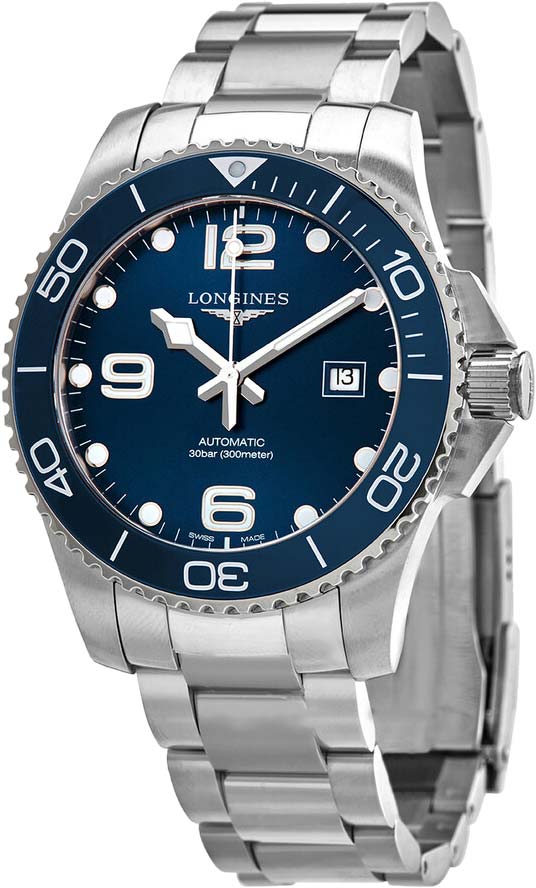 Часы с круглым стальным корпусом. Эксклюзивный механизм Longines с частотой 25200 полуколебаний в час. Запас хода примерно 72 часа. Циферблат выполнен по технологии Sunray (солнечные лучи) и защищен прочным сапфировым стеклом. Накладные метки в виде точек и арабских цифр. Люминесцентное покрытие Super-LumiNova, которое светится в темноте после непродолжительной зарядки на свету.