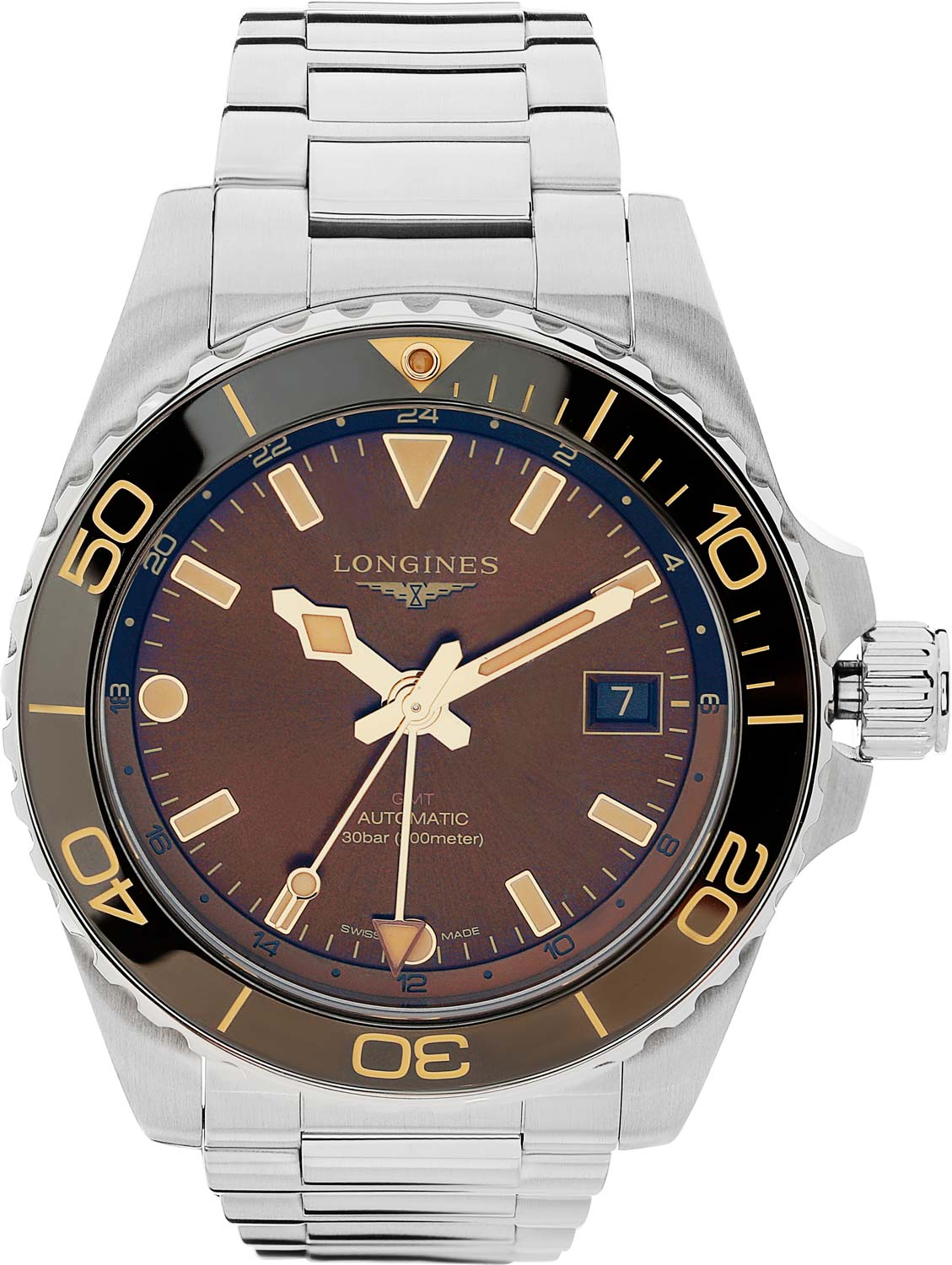 Благодаря надежному механизму этот стильный аксессуар никогда не подведет вас. HydroConquest GMT. Часы с круглым стальным корпусом. Эксклюзивный механизм Longines с частотой 25200 полуколебаний в час. Запас хода примерно 72 часа. Защищены от магнитных полей. Мировое время в 24-х часовом формате времени. Циферблат выполнен по технологии Sunray (солнечные лучи) и защищен прочным сапфировым стеклом. Накладные метки в виде штрихов и точек. Люминесцентное покрытие Super-LumiNova, которое светится в темноте после непродолжительной зарядки на свету. Окошко даты находится в положении 3 часа. Безель с керамической вставкой вращается в одном направлении. Завинчивающиеся задняя крышка и рифленая заводная головка с защитой. Стальной браслет с двойной раскладывающейся застежкой. Внешний вид упаковки может отличаться от представленной на фото. Уточняйте при заказе.
