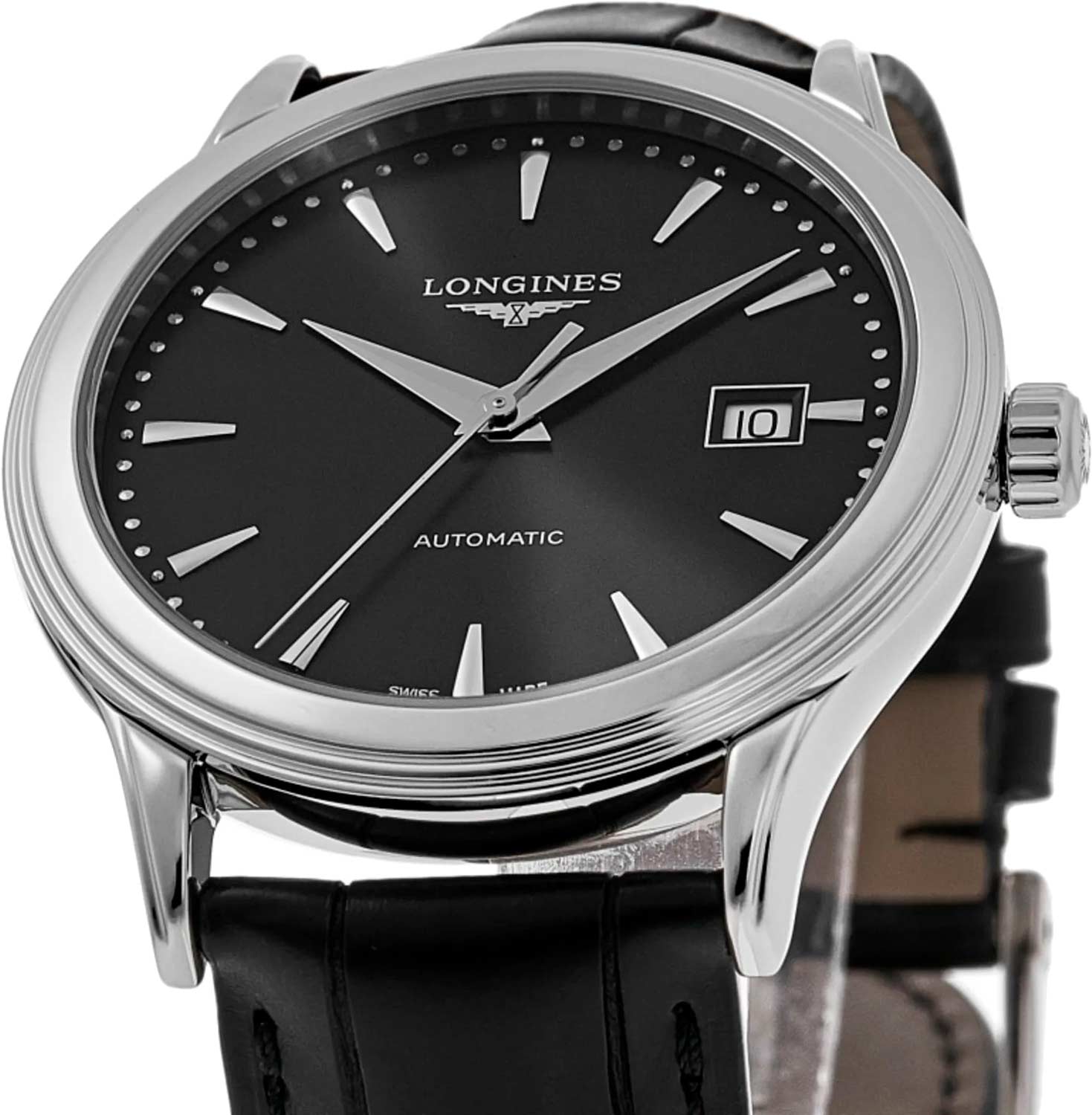 Мужские наручные часы с круглым стальным корпусом. Эксклюзивный механизм Longines с частотой 25200 полуколебаний в час. Запас хода примерно 72 часа. Циферблат выполнен по технологии Sunray (солнечные лучи) и защищен прочным сапфировым стеклом. Накладные метки в виде штрихов.
