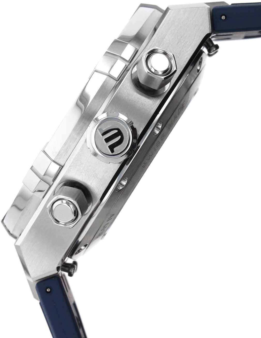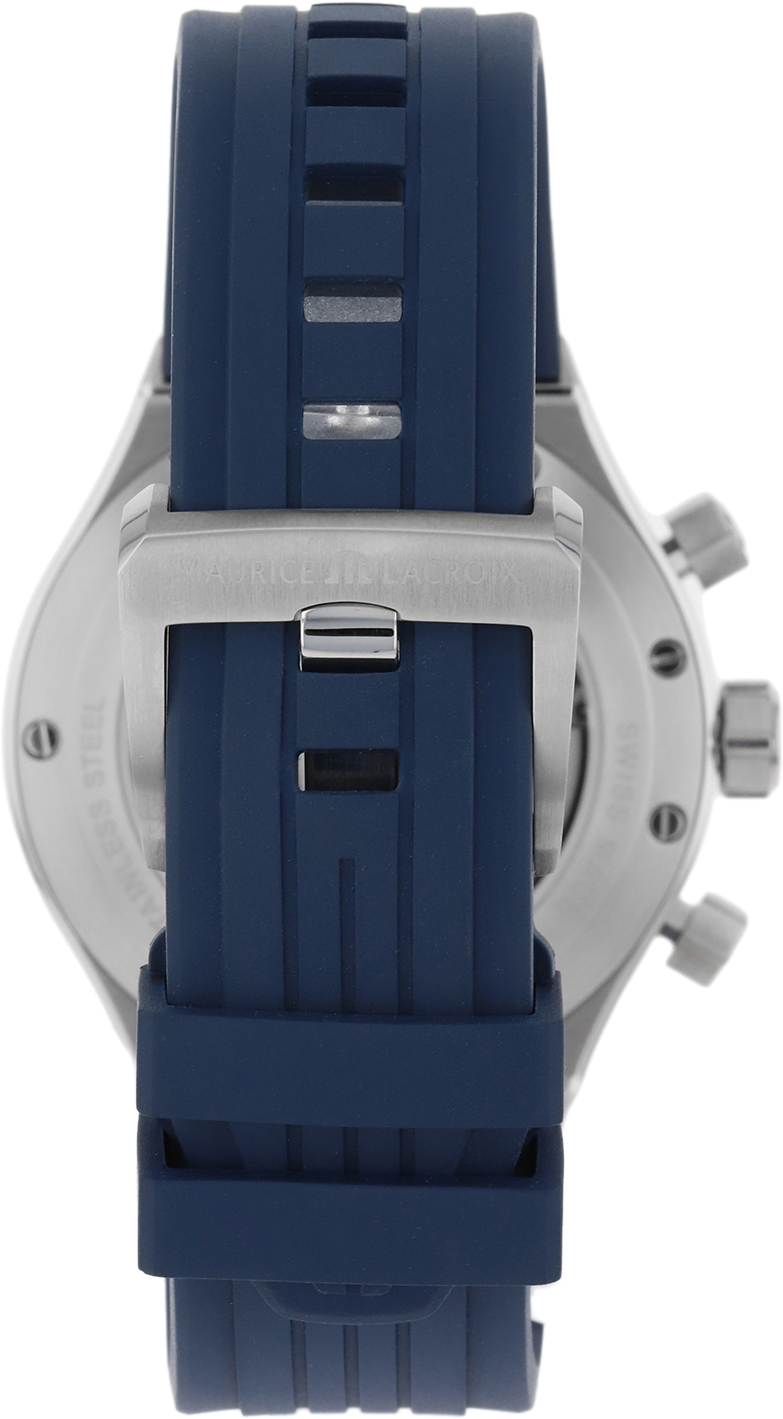 Завинчивающаяся рифленая заводная головка с логотипом бренда. Прозрачная задняя крышка с сапфировым стеклом с антибликовым покрытием крепится на 7-ми винтах. Удобный резиновый ремешок с логотипом Maurice Lacroix ''M''. Классическая стальная застежка. Система быстрой замены ремешка. Бренд Maurice Lacroix заботится об окружающей среде и изготавливает фирменную упаковку из океанического переработанного пластика.