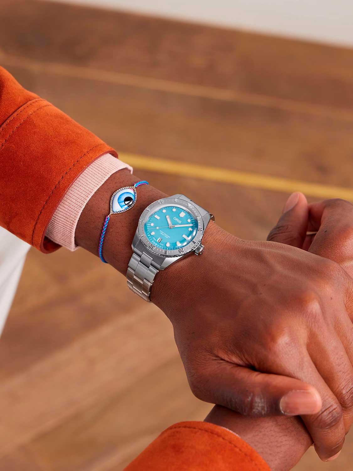 Аксессуар от компании Oris - эталон швейцарской точности и качества. Divers Sixty-Five. В высокоточном механизме 26 камней, частота 28800 полуколебаний в час. Запас хода 38 часов. Функция stop-second. Быстрая установка даты. Окошко даты находится в положении 6 часов. Люминесцентное покрытие стрелок и меток позволит вам следить за временем даже в полной темноте. Завинчивающаяся рифленая заводная головка. Завинчивающаяся задняя крышка с минеральным стеклом. Многокомпонентный браслет с раскладывающейся застежкой.