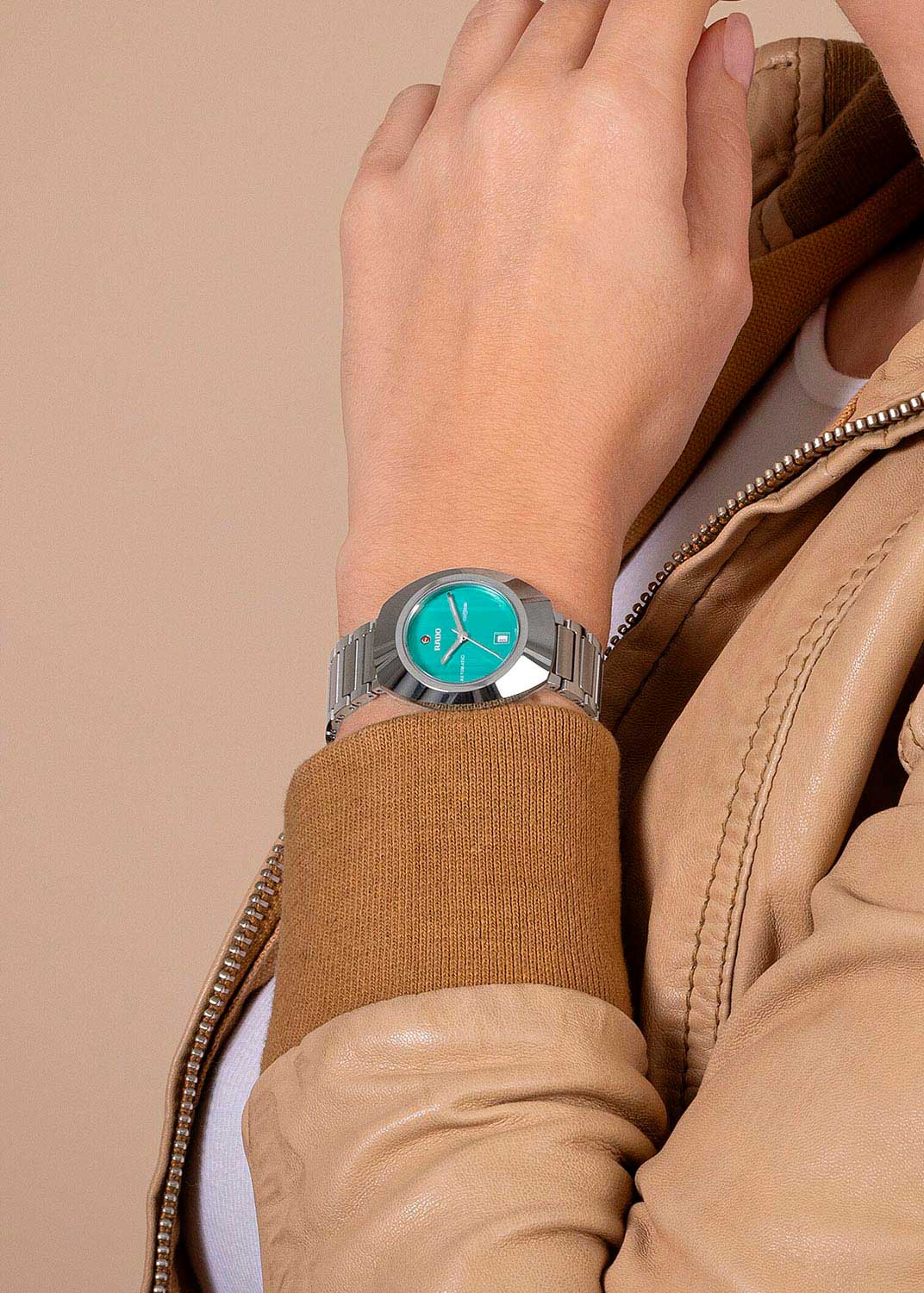 Уникальные автоматические наручные женские часы DiaStar Original Automatic. В механизме 25 камней. Запас хода 48 часов. Антимагнитная пружина Nivachron™. Стальной корпус с овальным безелем из композитного соединения Ceramos. Ceramos – это высокотехнологичная керамика, карбид титана и металлический сплав. Легкое и принимающее температуру кожи соединение, которое имеет те же качества и преимущества, что и высокотехнологичная керамика, но при этом обладает металлическим блеском.