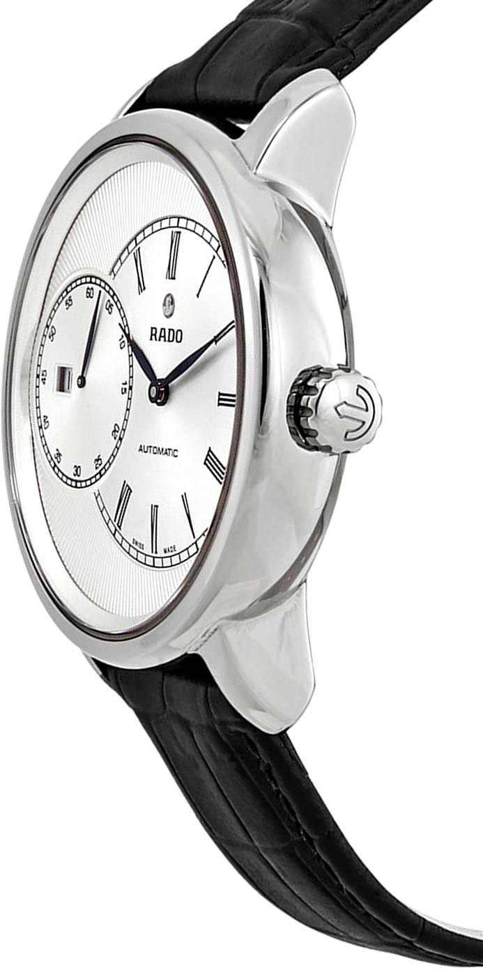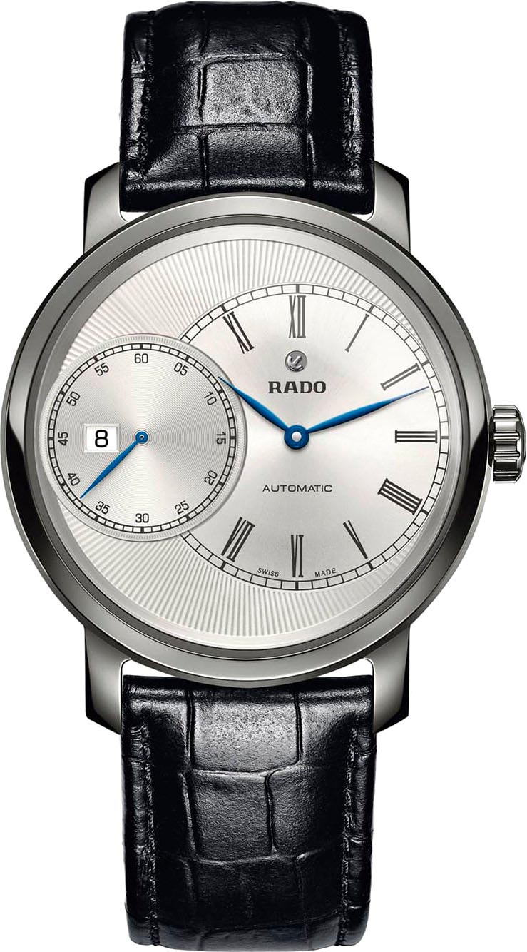 Швейцарские автоматические мужские часы DiaMaster Automatic Grand Second. Круглый керамический корпус. Циферблат выполнен по технологии Sunray (солнечные лучи) и украшен радиальным декоративным узором. Метки в виде римских цифр. Секундная стрелка вынесена на отдельный циферблат. Листовидные стрелки в стиле Feuille. Окошко даты находится в положении 9 часов. Рифленая заводная головка. Удобный кожаный ремешок с раскладывающейся застежкой.