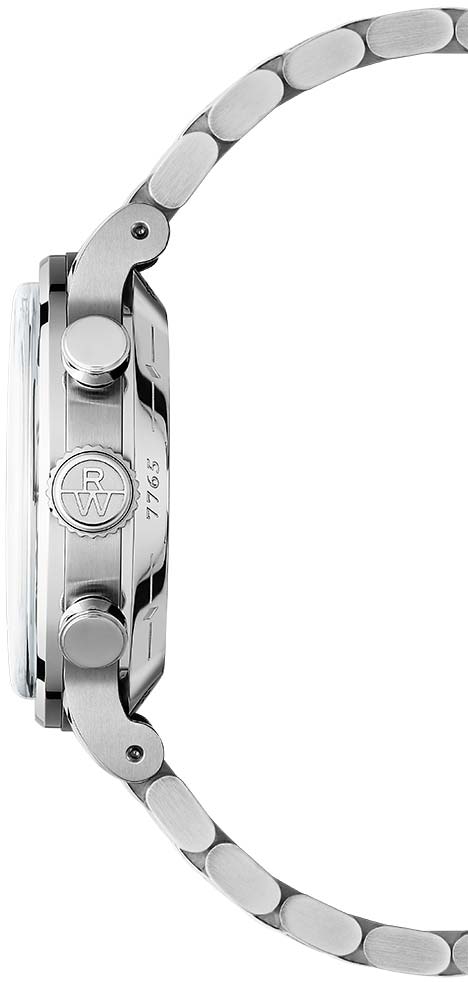 Millesime Tri-Compax. Механические часы-хронограф с секундомером и тахиметром. Запас хода 62 часа. W-образный ротор. Циферблат с метками в виде штрихов защищен прочным сапфировым стеклом. Прозрачная задняя крышка с сапфировым стеклом. Заводная головка с логотипом RW. Браслет с раскладывающейся застежкой. Застежка с двойной системой защиты.
