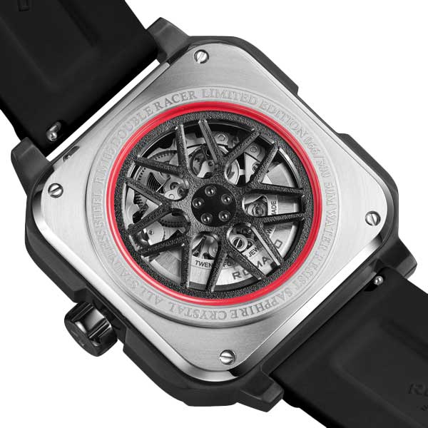 Пронизанные духом гоночного автомобиля эти часы созданы для настоящих лидеров. Double Racer Skeleton Automatic. Лимитированная серия - 300 экземпляров. Скелетонизированные часы, дизайн которых вдохновлен гоночными автомобилями. В механизме 24 камня. Запас хода до 44 часов. Стальной корпус украшен стильными винтами. Циферблат защищен прочным сапфировым стеклом. Накладные метки в виде штрихов. Заводная головка украшена буквой «R». Прозрачная задняя крышка крепится на 4-х винтах. Ремешок с классической застежкой и системой быстрой замены. В комплекте сменный кожаный ремешок.