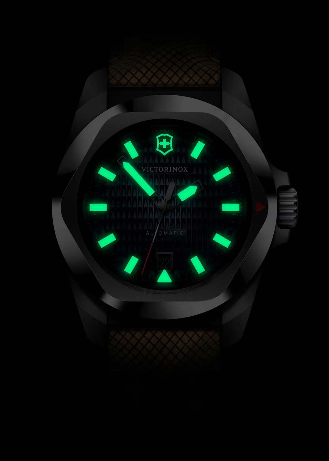 I.N.O.X. Automatic. Автоматические мужские часы. В механизме 26 камней. Стальной ударопрочный корпус часов, сертифицированный по стандарту ISO 1413, c безелем, выгравированным в форме шестигранника. Гильошированный циферблат с накладными метками в виде штрихов.