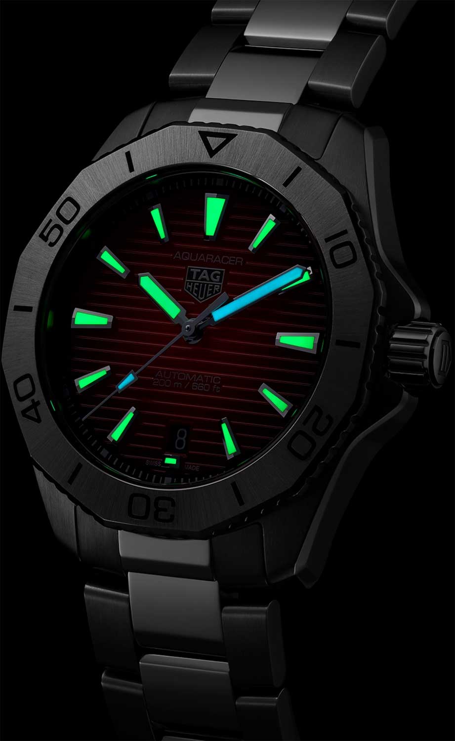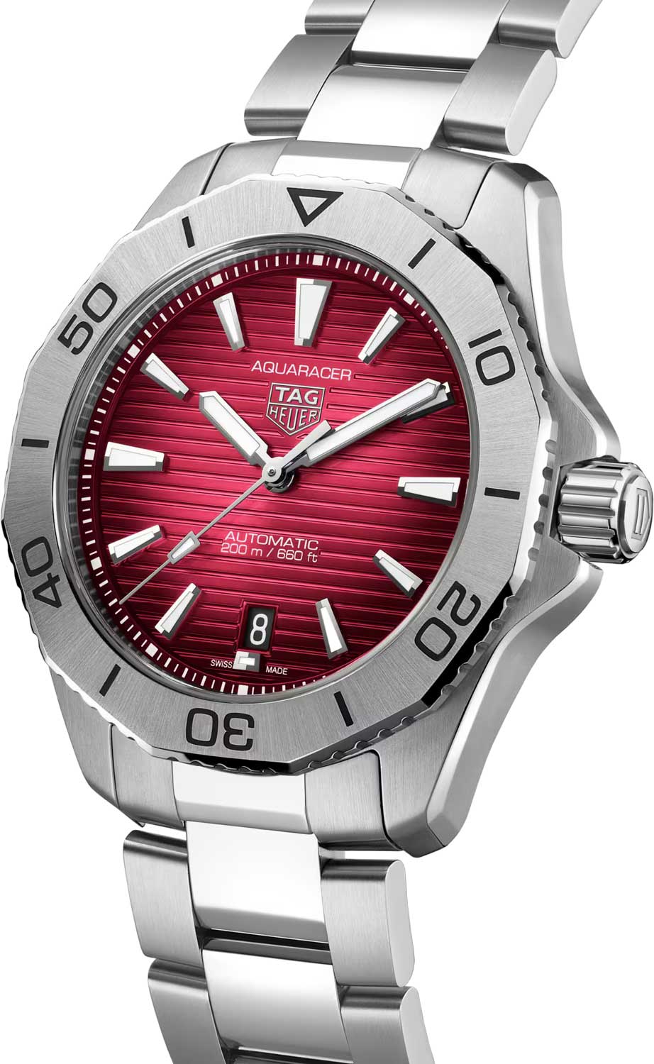 Созданные для работы в тяжелых условиях и исключительного стиля, часы TAG Heuer Aquaracer - это универсальный инструмент, с которым можно идти куда угодно и делать что угодно. Благодаря новому эффектному циферблату и превосходной эргономике эти часы побуждают достигать предела своих возможностей. Мужские часы Aquaracer Professional 200. В точнейшем швейцарском механизме частота 28800 полуколебаний в час. Запас хода 38 часов. Циферблат выполнен по технологии Sunray (солнечные лучи) и защищен прочным сапфировым стеклом. Накладные метки в виде штрихов. Метки и стрелки с люминесцентным покрытием, которое светится в темноте после непродолжительной зарядки на свету. Вращающийся 12-гранный безель. Окошко даты находится в положении 6 часов. Завинчивающаяся заводная головка с защитой. Задняя крышка украшена выгравированной 8-лучевой розой ветров. Браслет с раскладывающейся застежкой, предохранительными кнопками и системой точной регулировки длины.