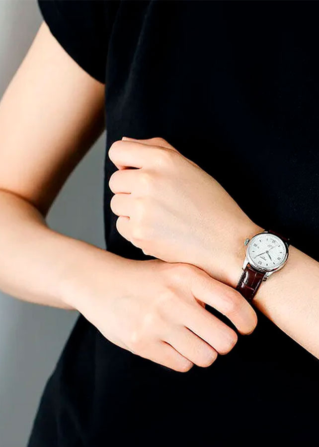 Женские наручные часы Le Locle. В механизме 25 камней, частота 28800 полуколебаний в час. Запас хода 38 часов.
