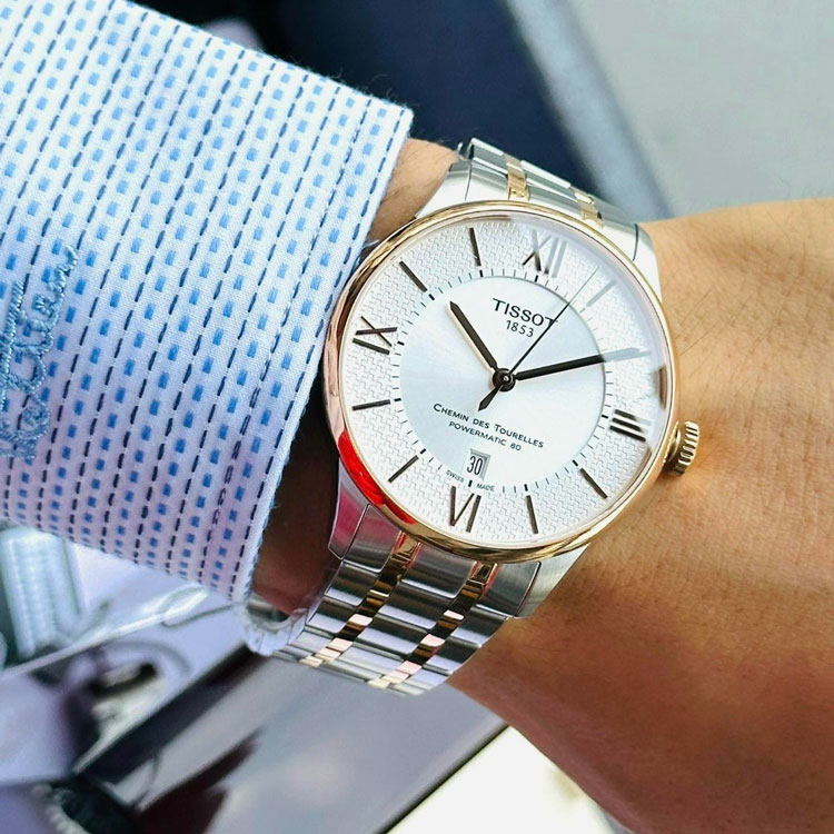 Стильный аксессуар подчеркнет ваш индивидуальный подход в создании повседневного образа. Наручные мужские часы Chemin des Tourelles Powermatic 80. В механизме 23 камня, частота 21600 полуколебаний в час. Запас хода 80 часов. Круглый стальной корпус. Накладные метки в виде римских цифр и штрихов. Заостренные прямоугольные стрелки в стиле Baton. Окошко даты находится в положении 6 часов. Рифленая заводная головка. Надежный стальной браслет с раскладывающейся застежкой.