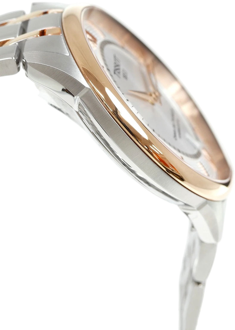 Круглый стальной корпус. Циферблат украшен рельефным декоративным узором в зоне меток и выполнен по технологии Sunray (солнечные лучи) в центре. Накладные метки в виде римских цифр и штрихов. Заостренные стрелки в стиле Alpha. Окошко даты находится в положении 6 часов.
