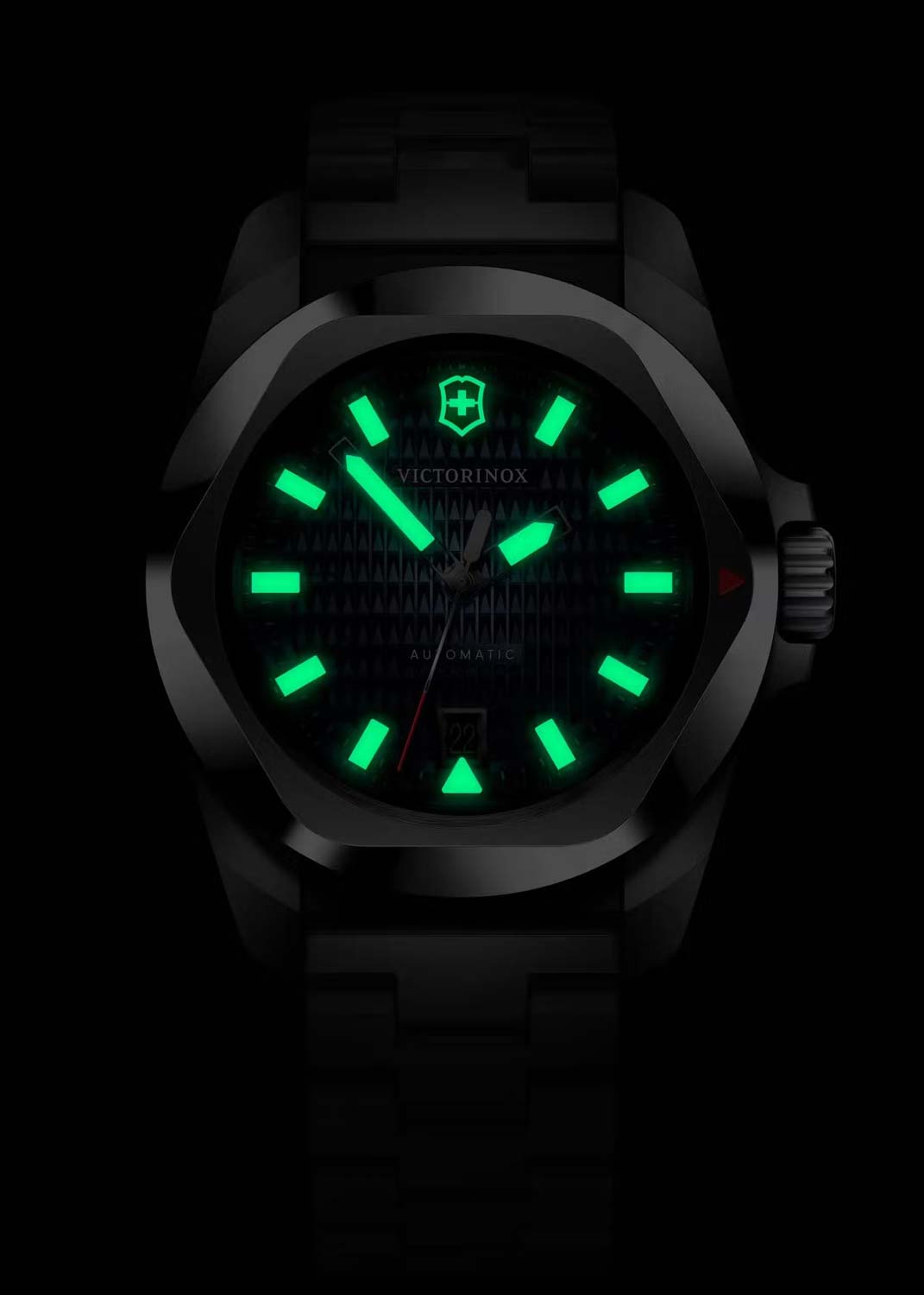 I.N.O.X. Automatic. Автоматические мужские часы. В механизме 26 камней. Стальной ударопрочный корпус часов, сертифицированный по стандарту ISO 1413, c безелем, выгравированным в форме шестигранника. Гильошированный циферблат с накладными метками в виде штрихов.