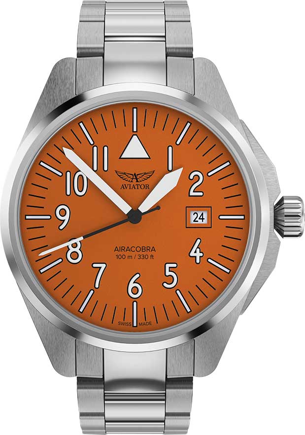 Эти кварцевые часы, которые посвящены одному из самых крепких и надежных истребителей, не имеют ни одной случайной детали. Созданы для настоящих ценителей времени, поддерживающих эстетику и дух авиации. Мужские кварцевые авиаторские часы Airacobra 43 Type A. Коллекция посвящена легендарному американскому истребителю Bell Airacobra P-39. В механизме 4 камня. Метки в виде штрихов и арабских цифр. Окошко даты находится в положении 3 часа. Антибликовое покрытие на сапфировом стекле позволяет с легкостью узнать время даже при ярком солнце. Рифленая заводная головка с защитой. Батарейка рассчитана на 40 месяцев. Стальной браслет с раскладывающейся застежкой.