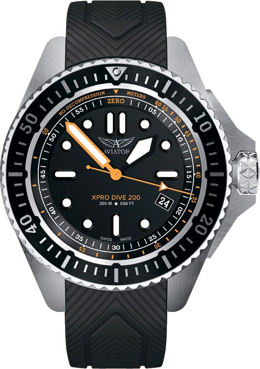 Мужские наручные кварцевые часы Xpro Dive 200. В механизме 4 камня. Запас хода до 40 месяцев. Эргономичный круглый стальной корпус с матовой отделкой. Алюминиевый безель с метками, покрытыми составом LumiNova. Матовый циферблат. На внутреннем кольце циферблата шкала бездекомпрессионного предела, что обеспечивает повышенную безопасность и точность. Метки в виде точек и штрихов.