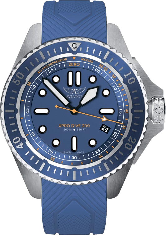 Мужские наручные кварцевые часы Xpro Dive 200. В механизме 4 камня. Запас хода до 40 месяцев. Эргономичный круглый стальной корпус с матовой отделкой. Алюминиевый безель с метками, покрытыми составом LumiNova. Матовый циферблат. На внутреннем кольце циферблата шкала бездекомпрессионного предела, что обеспечивает повышенную безопасность и точность. Метки в виде точек и штрихов.