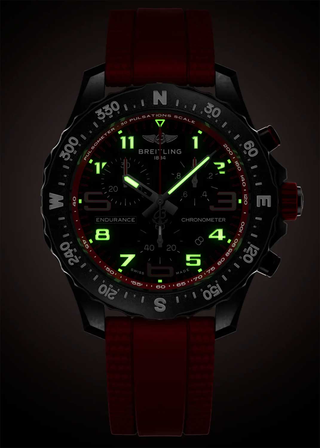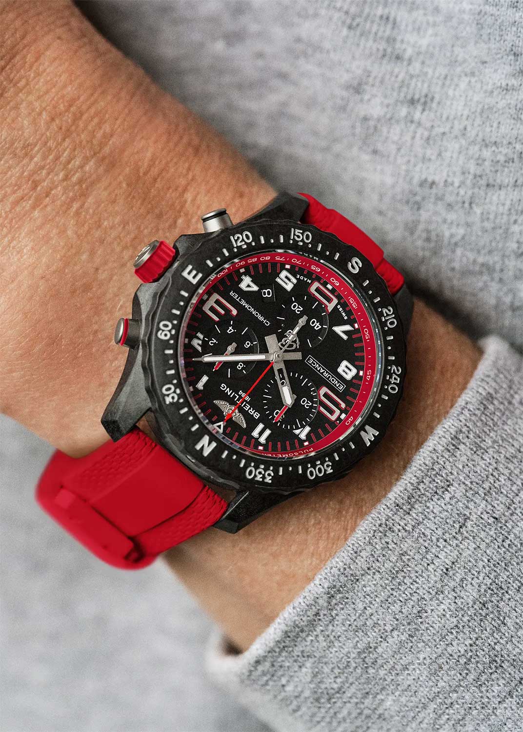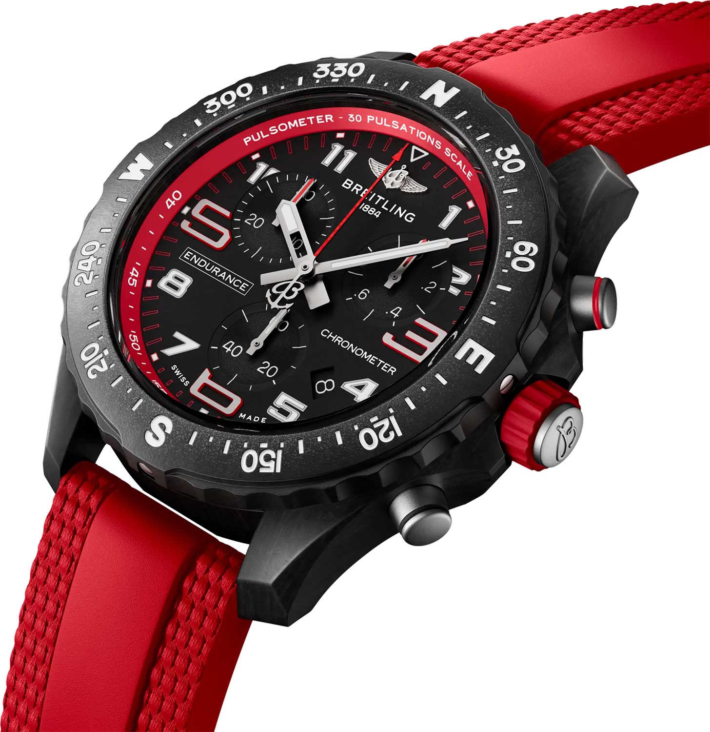 Endurance Pro. Унисекс часы. В высокоточном термокомпенсированном механизме SuperQuartz™ 6 камней. Хронометр сертифицирован C.O.S.C. Корпус и застежка выполнены из запатентованного сверхлегкого полимера Breitlight®, который обладает низкой магнитной восприимчивостью, а также высокой стойкостью к царапинам, износу и коррозии.