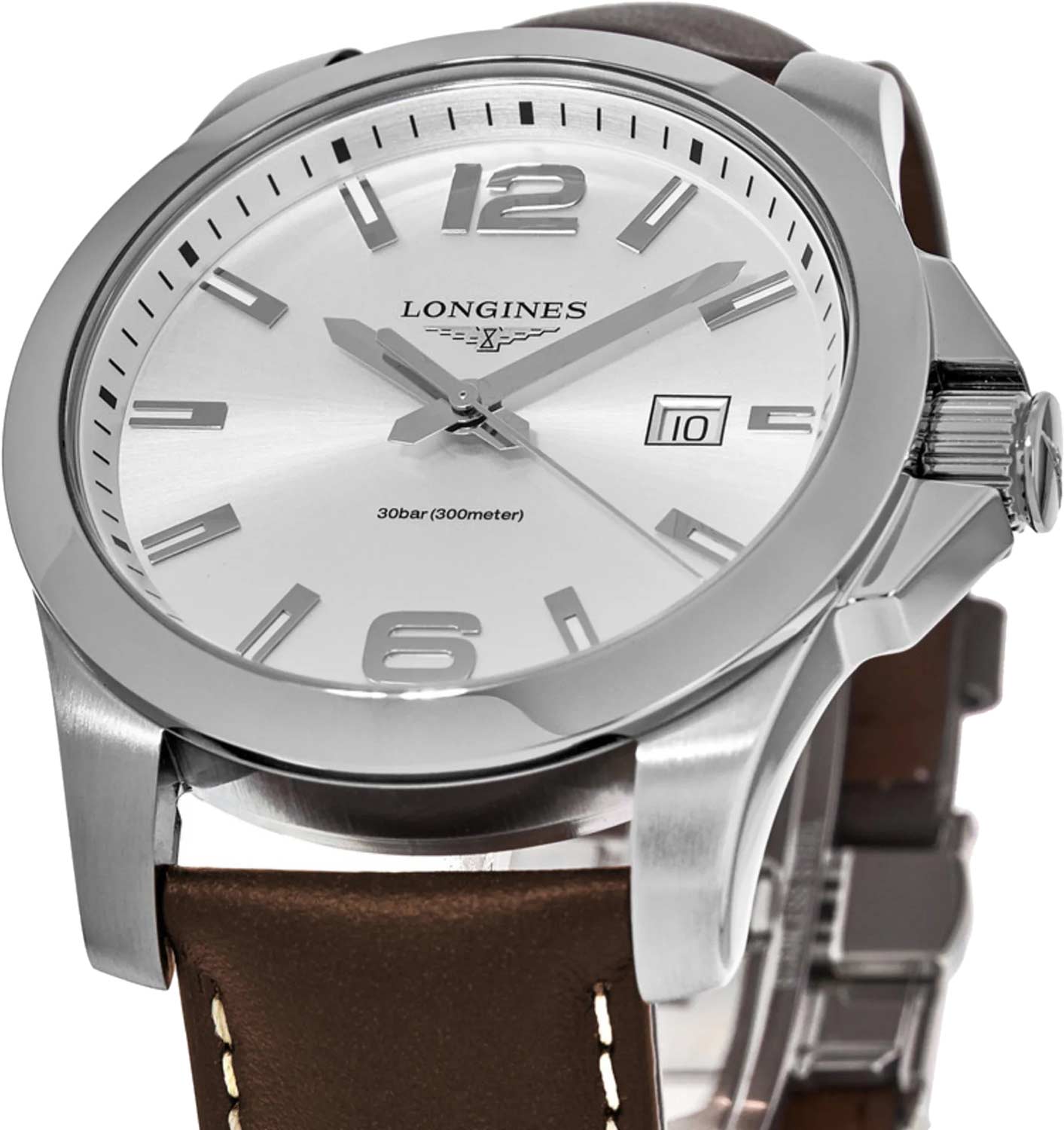 Окошко даты находится в положении 3 часа. Рифленая заводная головка с защитой. Завинчивающаяся задняя крышка украшена объемным логотипом компании Longines. Кожаный ремешок с раскладывающейся застежкой. Внешний вид упаковки может отличаться от представленной на фото. Уточняйте при заказе.