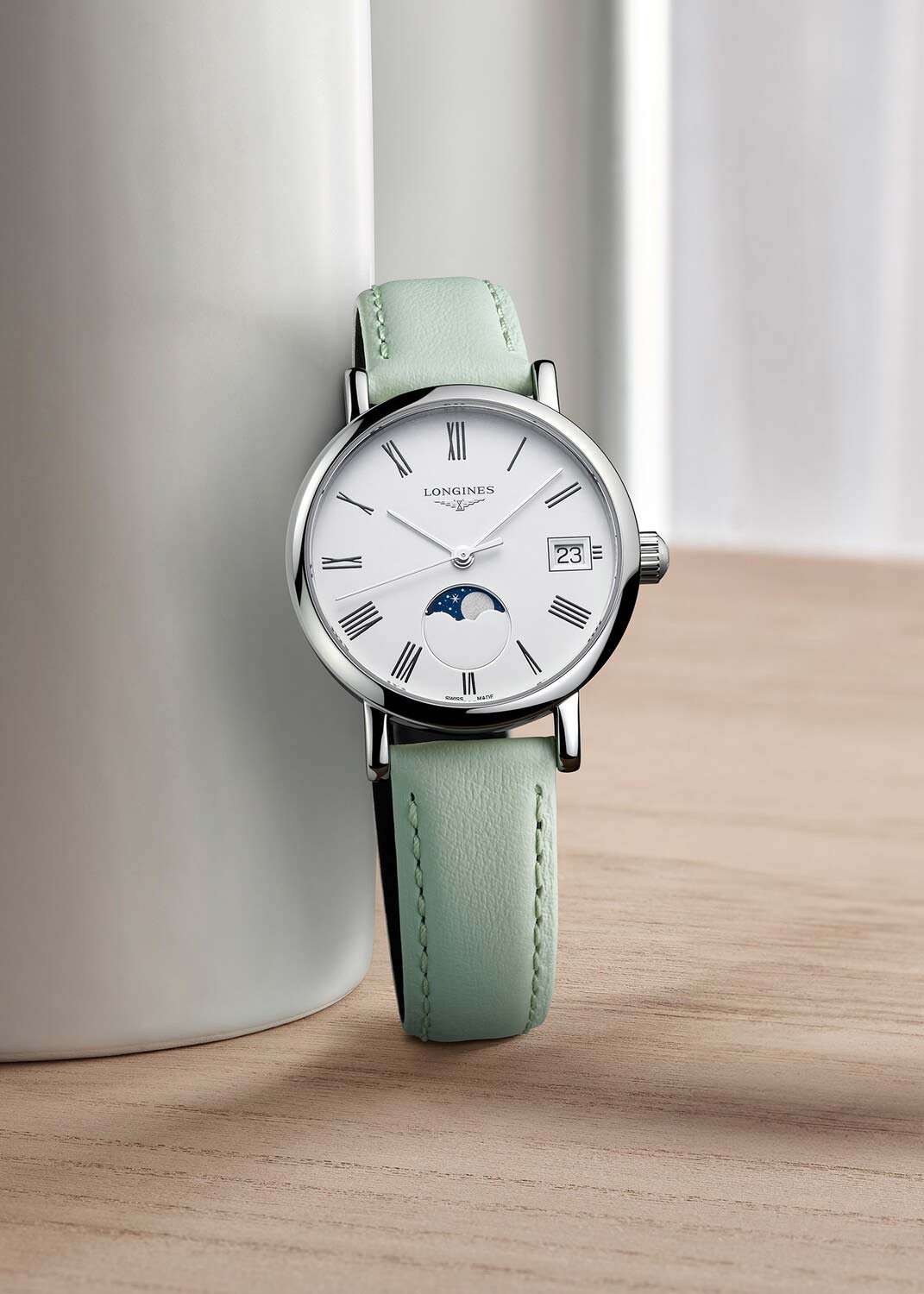 Женские наручные часы. Круглый стальной корпус. Матовый циферблат защищен прочным сапфировым стеклом. Нарисованные метки в виде римских цифр. Окошко даты находится в положении 3 часа. Индикатор отображения фаз Луны находится в положении 6 часов. Рифленая заводная головка. Кожаный ремешок с классической застежкой. Внешний вид упаковки может отличаться от представленной на фото. Уточняйте при заказе.
