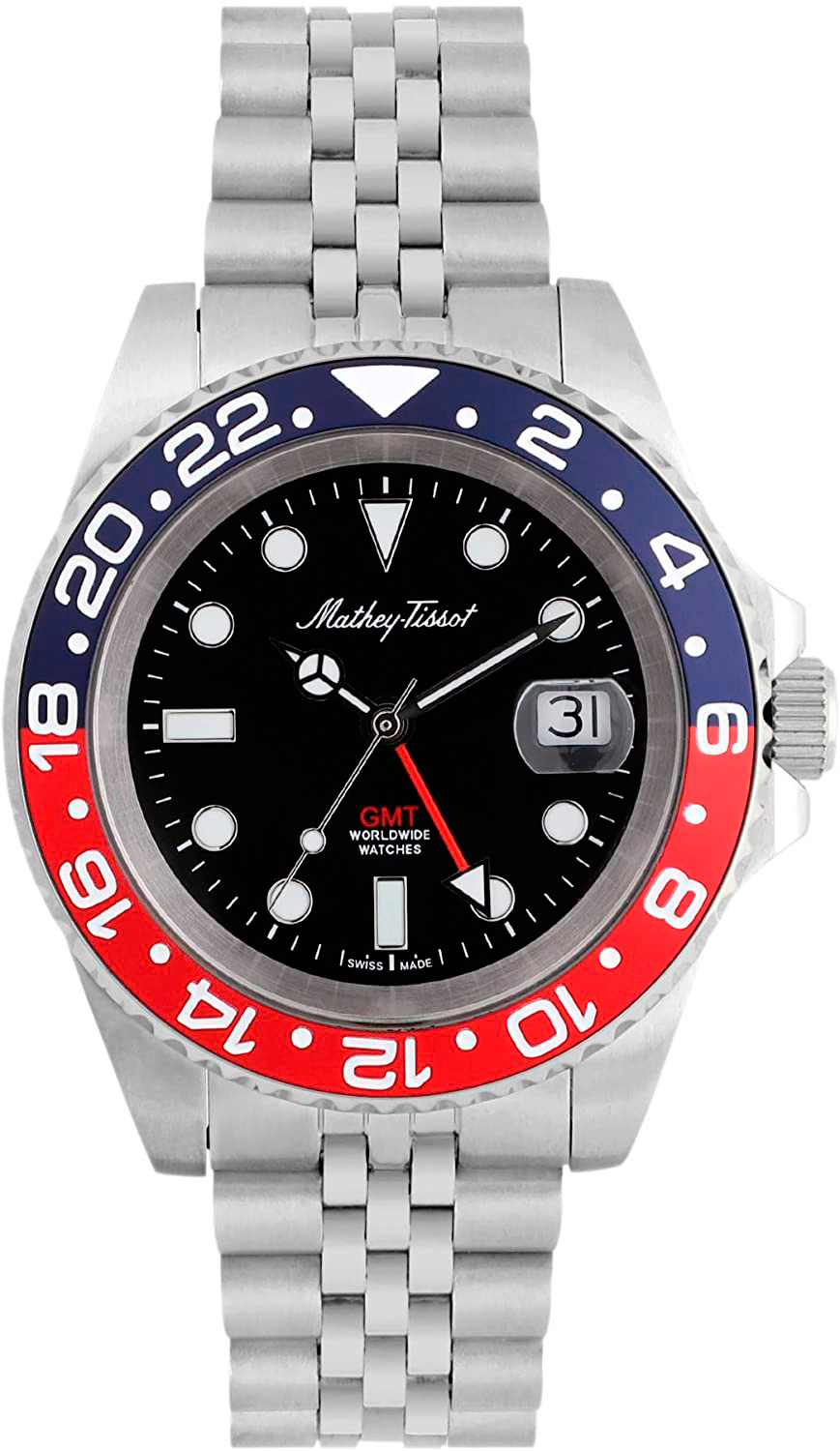 Яркий безель на этих часах будет выигрышно смотреться с любым вашим образом. GMT. Мужские часы с круглым корпусом. Второй часовой пояс в 24-х часовом формате времени (время по Гринвичу). Окошко даты с увеличительным стеклом. Рифленая заводная головка с защитой. Браслет с раскладывающейся застежкой.