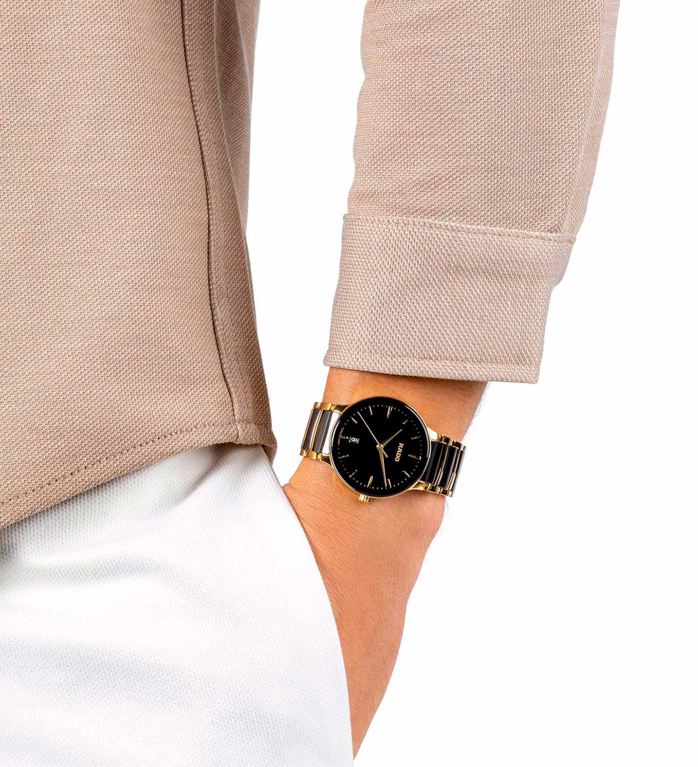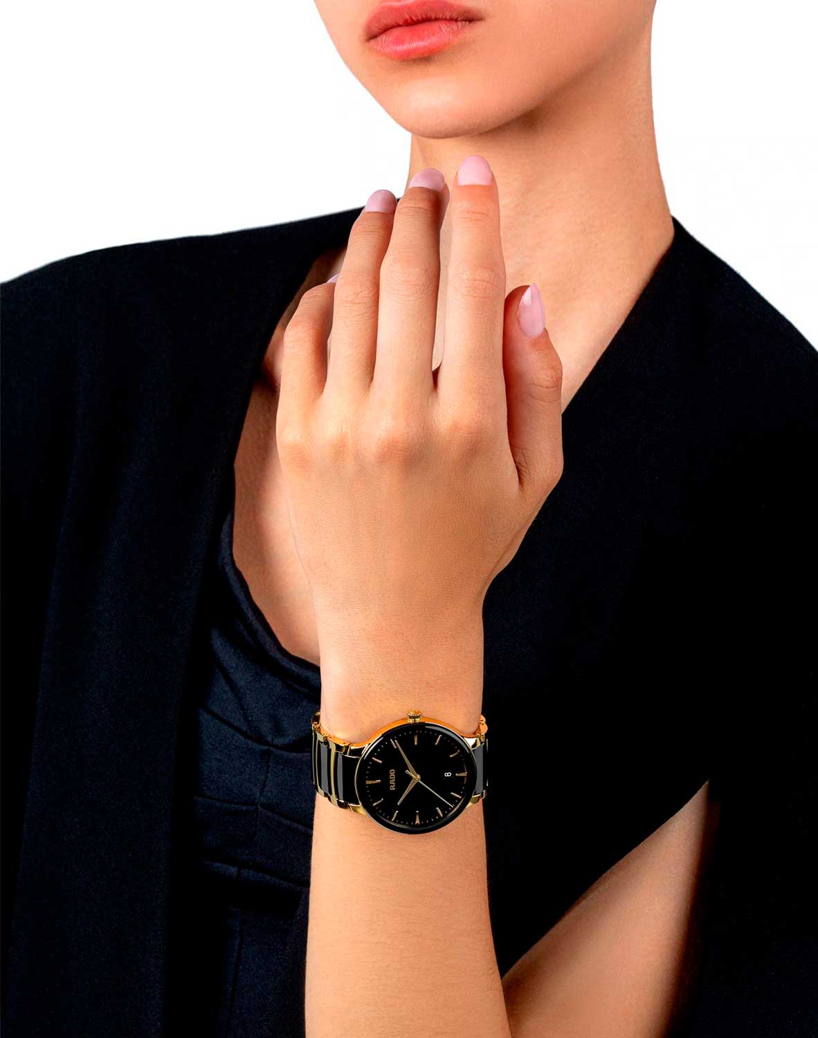 Безупречный классический стиль часов является признаком хорошего тона, который непременно оценят окружающие. Швейцарские наручные часы унисекс Centrix Quartz. Круглый стальной корпус. Циферблат выполнен по технологии Sunray (солнечные лучи). Накладные метки в виде штрихов. Заостренные прямоугольные стрелки в стиле Baton. Окошко даты находится в положении 6 часов. Рифленая заводная головка. Надежный стальной браслет с вставками из черной керамики. Раскладывающаяся застежка.