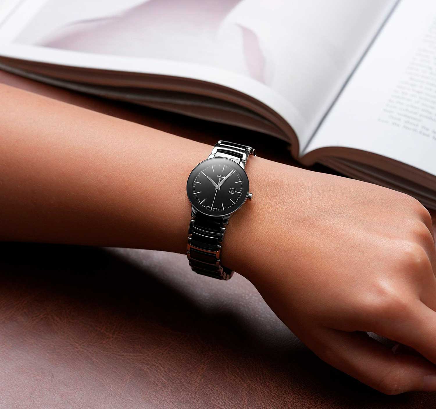 Этот женский аксессуар наполнен классическим дизайном и настоящим швейцарским качеством. Наручные кварцевые женские часы. Круглый стальной корпус. Циферблат выполнен по технологии Sunray (солнечные лучи). Накладные метки в виде штрихов. Прямоугольные стрелки в стиле Baton с люминесцентным покрытием, которое светится в темноте после непродолжительной зарядки на свету. Окошко даты находится в положении 3 часа. Гладкая заводная головка. Надежный стальной браслет с керамическими вставками. Раскладывающаяся застежка.