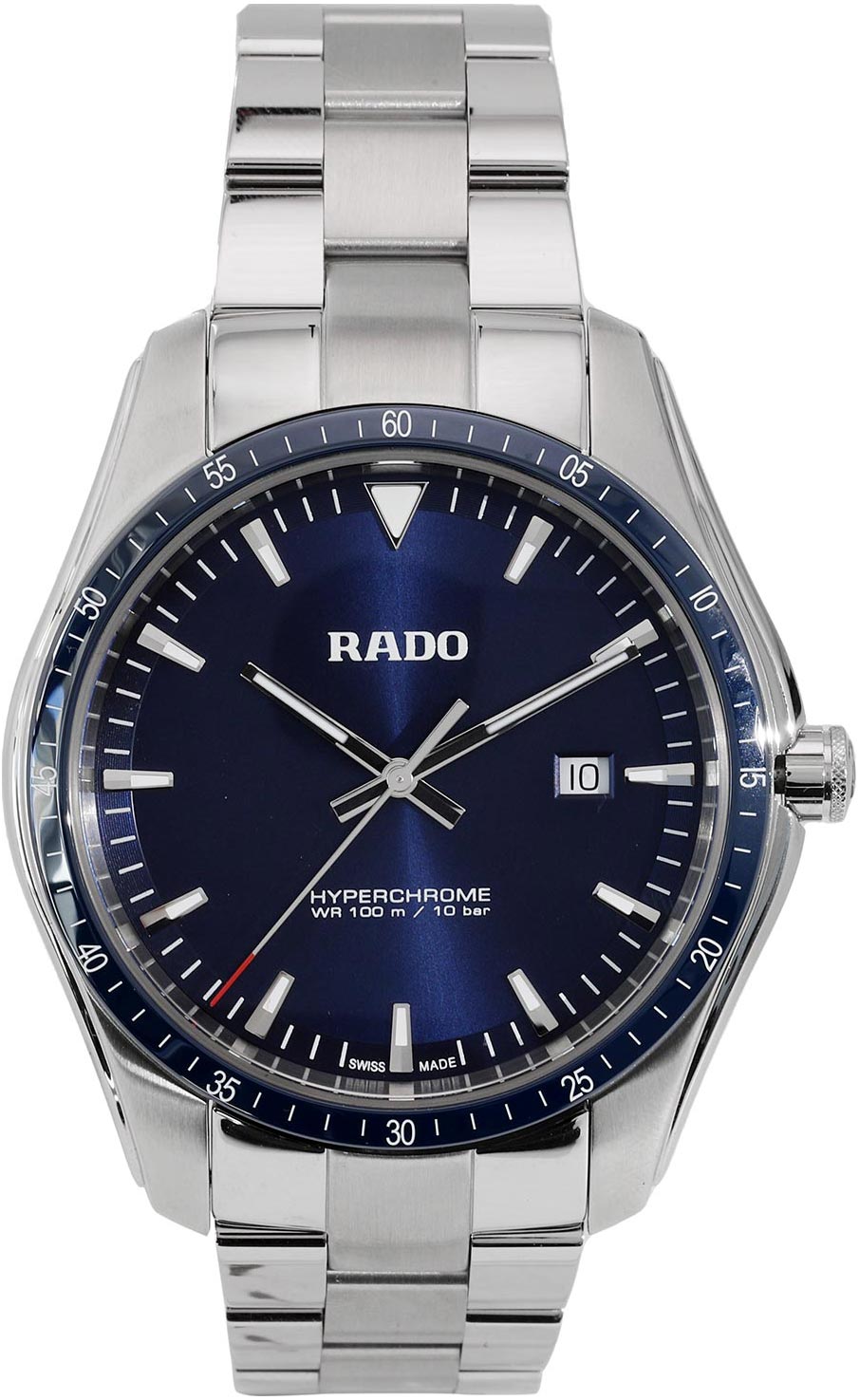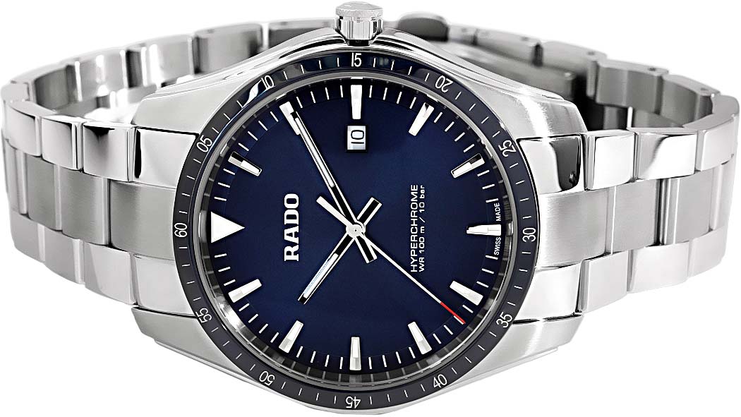 Динамичные, гладкие и спортивные, часы HyperChrome Quartz созданы для того, чтобы хорошо выглядеть как в деловой одежде, так и на отдыхе. Благодаря безелю из высокотехнологичной керамики различных цветов: синего, зеленого, черного, плазменного или розового золота Ceramos, модель HyperChrome Quartz является настолько же универсальной, насколько и стильной. Водонепроницаемые часы. Круглый корпус с полированными и сатинированными поверхностями. Безель с минутной шкалой. Циферблат выполнен по технологии Sunray (солнечные лучи). Прямоугольные стрелки в стиле Baton. Метки в виде штрихов, 12-ти часовая метка в виде треугольника. Метки и стрелки с люминесцентным покрытием, которое светится в темноте после непродолжительной зарядки на свету. Окошко даты находится в положении 3 часа. Рифленая заводная головка. Надежный стальной браслет с раскладывающейся застежкой.