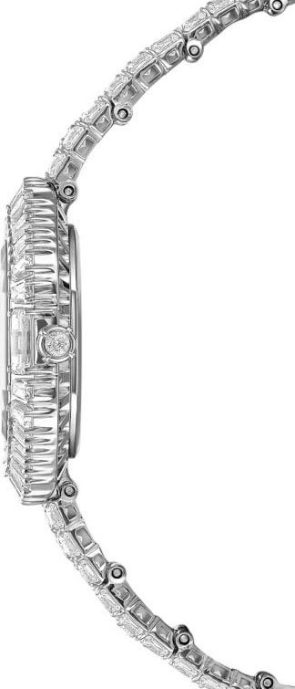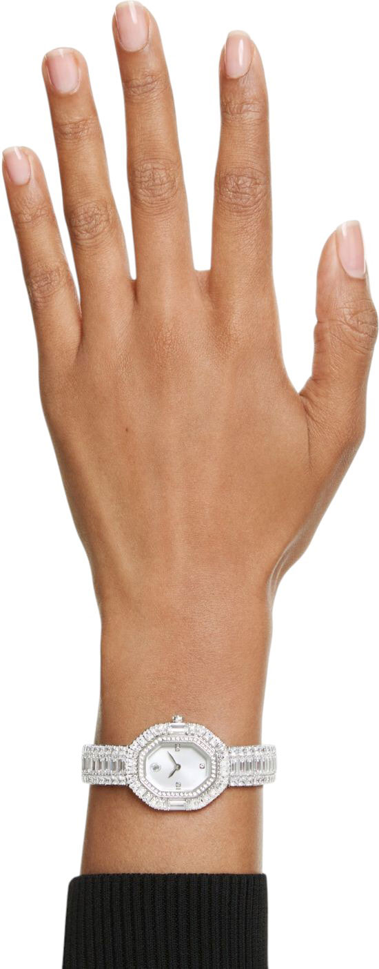 Заводная головка украшена кристаллом круглой огранки. Стальной браслет с застежкой-бабочкой украшен 72 кристаллами.