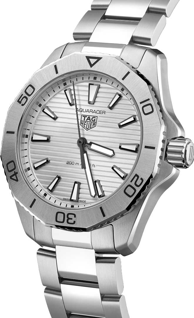 Эти универсальные часы со стальными корпусом и браслетом готовы принять любой вызов, предлагая оптимизированную эргономику и отделку для исключительного комфорта и элегантности. Aquaracer Professional 200. Мужские часы. Циферблат защищен прочным сапфировым стеклом. Метки в виде штрихов. Метки и стрелки с люминесцентным покрытием, которое светится в темноте после непродолжительной зарядки на свету. Вращающийся 12-гранный безель с минутной шкалой. Рифленая заводная головка с защитой. Задняя крышка украшена выгравированной 8-лучевой розой ветров. Браслет с раскладывающейся застежкой и предохранительными кнопками.