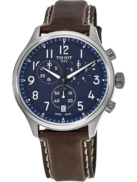 Tissot Chrono XL - один из самых больших хронографов (45 мм) в коллекции Tissot. Tissot Chrono XL Classic - это отличные часы для тех, кто ищет спортивный и элегантный хронограф со швейцарской технологией по разумной цене. T-Sport Chrono XL Vintage. Мужские наручные часы-хронограф с секундомером. В механизме 4 камня. Функция индикации заряда (EOL). Круглый стальной корпус. Метки в виде арабских цифр. Окошко даты находится в положении 6 часов. Рифленая заводная головка. Удобный кожаный ремешок.