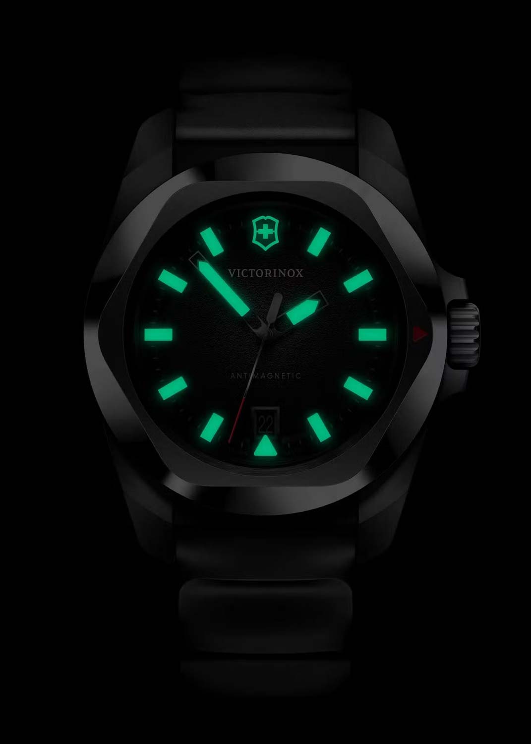 I.N.O.X. Quartz. Наручные мужские часы. Стальной корпус часов с безелем, выгравированным в форме шестигранника. Матовый циферблат с накладными метками в виде штрихов. Люминесцентные стрелки и метки SuperLuminova, которые светятся в темноте после непродолжительной зарядки на свету.