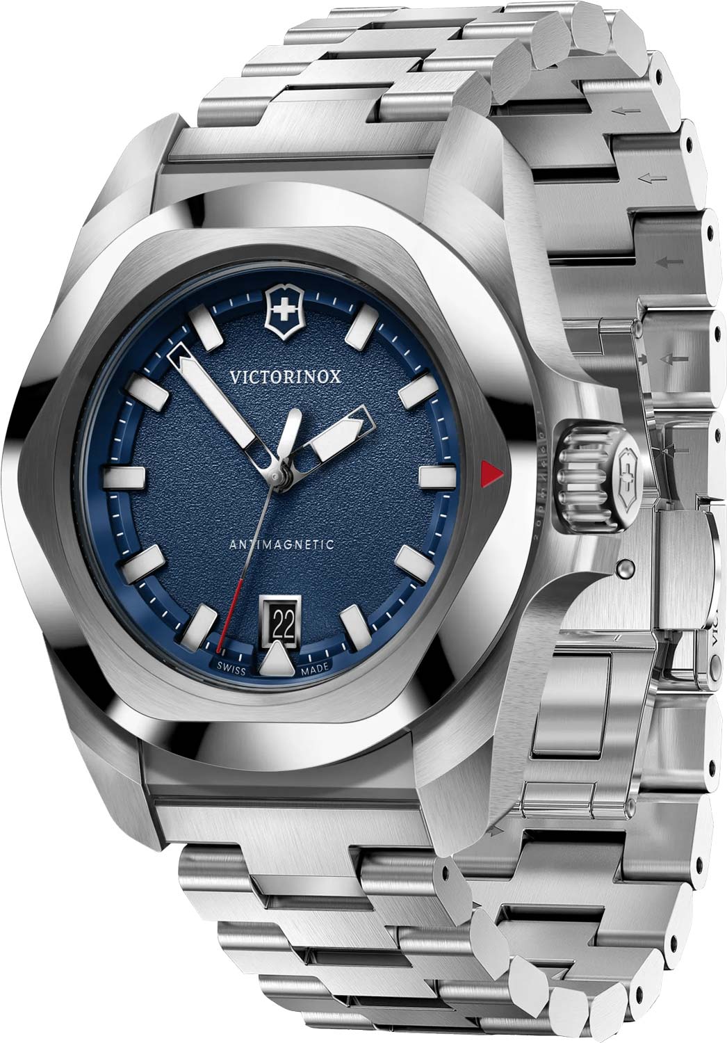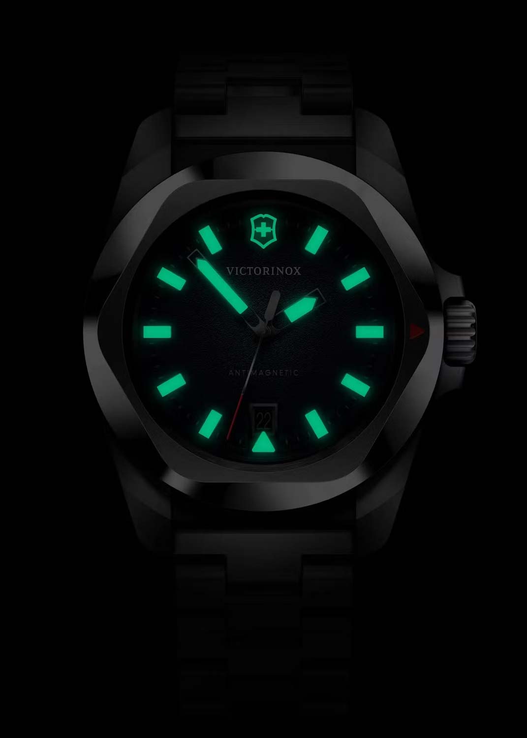 I.N.O.X. Quartz. Наручные мужские часы. Стальной корпус часов с безелем, выгравированным в форме шестигранника. Матовый циферблат с накладными метками в виде штрихов. Люминесцентные стрелки и метки SuperLuminova, которые светятся в темноте после непродолжительной зарядки на свету.