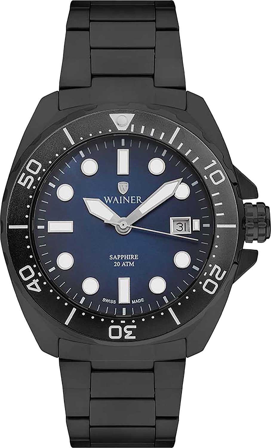 Высокий уровень водозащиты позволит вам не расставаться с часами даже в воде. Sport. Мужские часы в круглом корпусе из нержавеющей стали с водонепроницаемостью 200 метров. Циферблат украшен фирменным логотипом Wainer. Метки в виде точек и штрихов. Окошко даты находится в положении 3 часа. Рифленая заводная головка с защитой. Браслет с раскладывающейся застежкой.