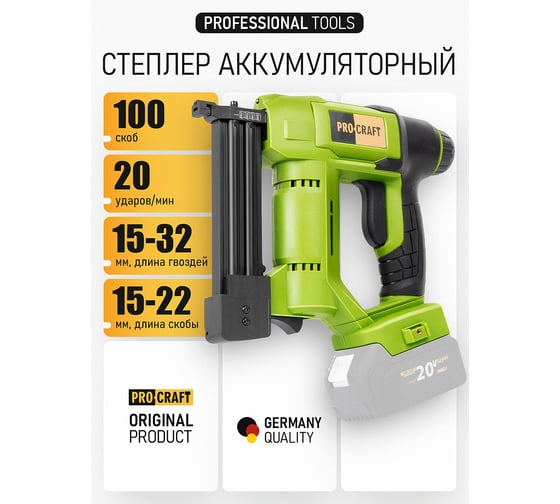 Степлер аккумуляторный Procraft 20 В, 20 уд/мин (Без АКБ и ЗУ) PEH20