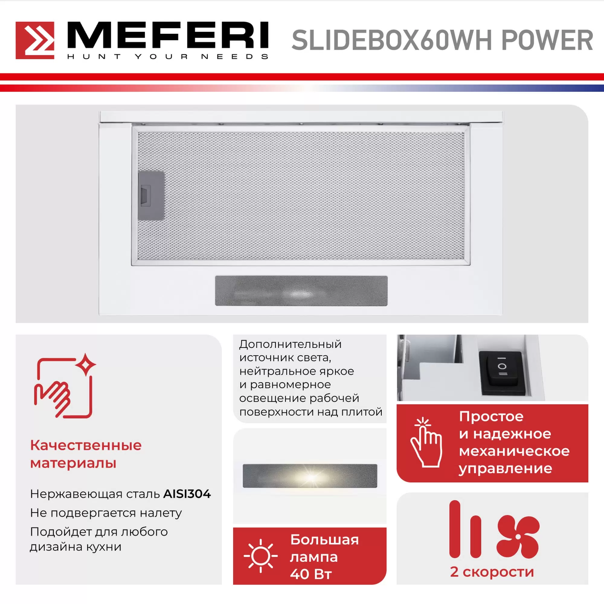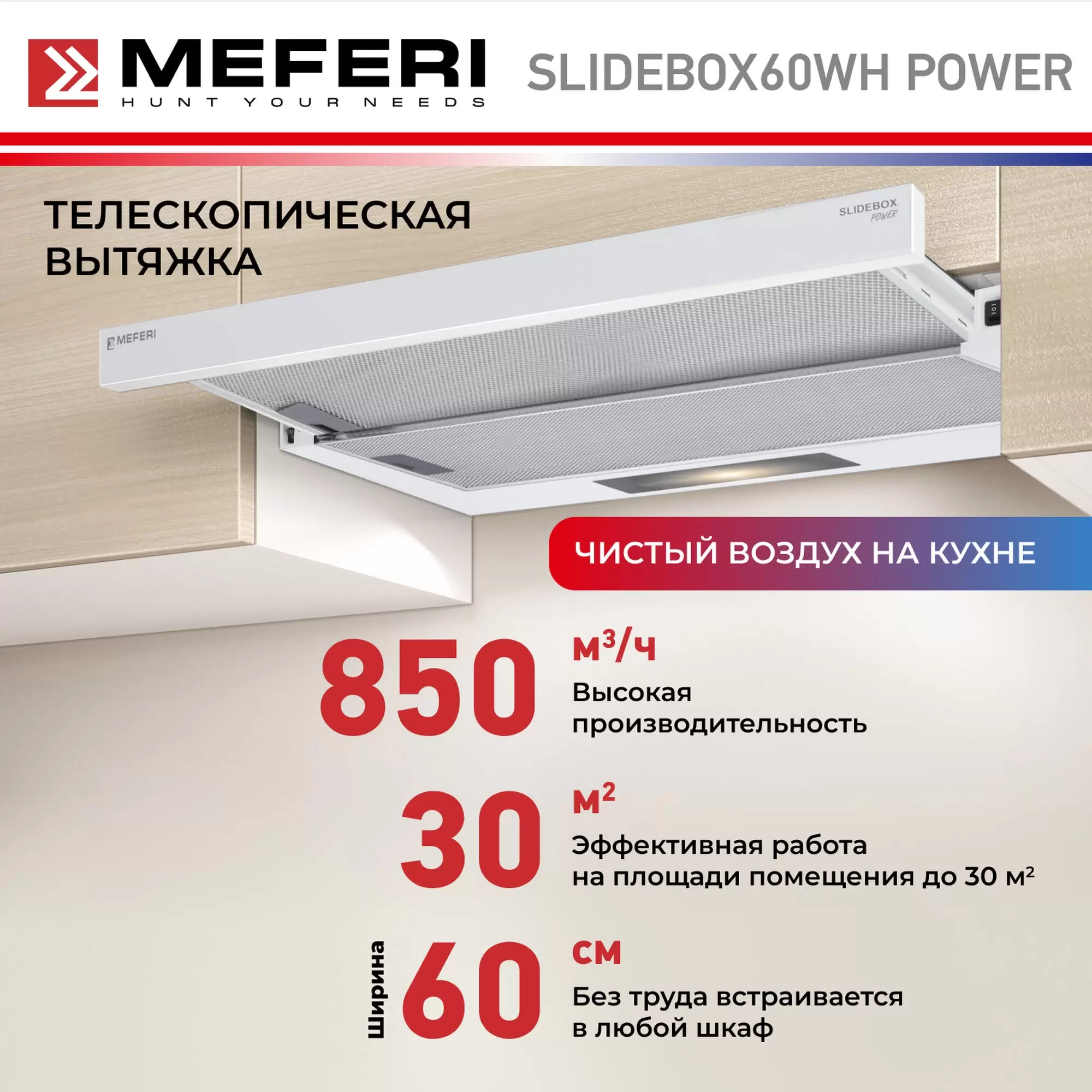 Телескопическая вытяжка MEFERI SLIDEBOX60WH POWER
