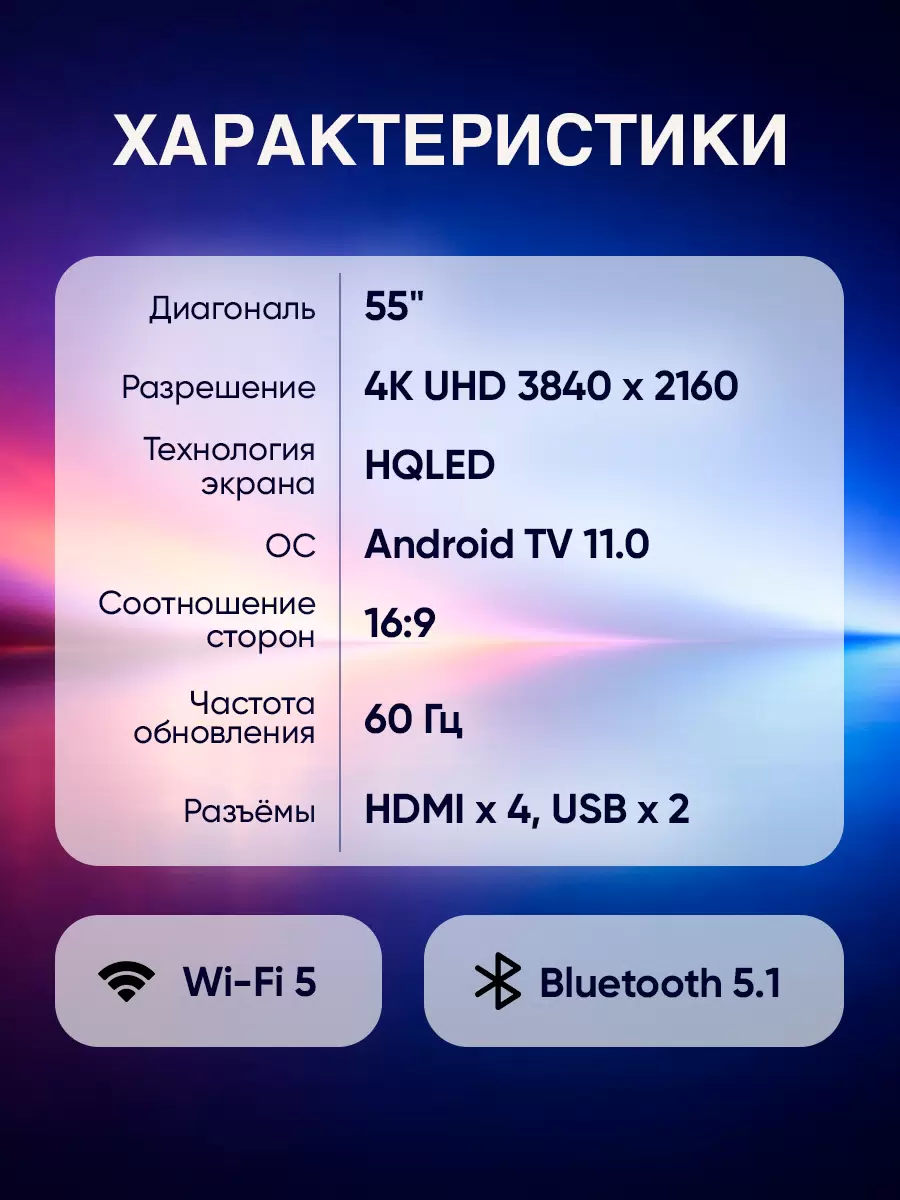 - Размер экрана55"(139 см)