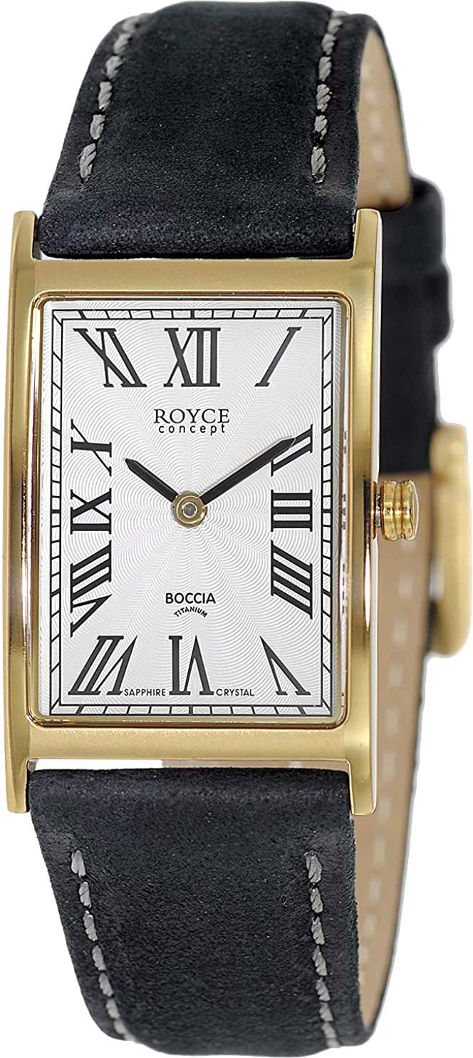 Прямоугольный титановый корпус часов смотрится очень гармонично с кожаным ремешком. Дополните свой образ яркой деталью. Royce. Женские часы с метками в виде римских цифр. Кожаный ремешок.