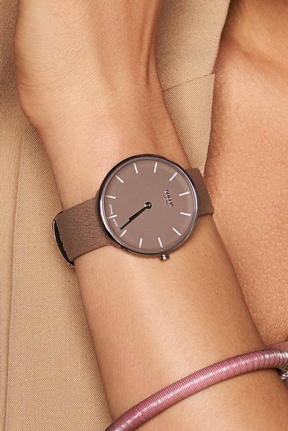 Часы, созданные с заботой об окружающей среде, станут вашим верным спутником. Circle-Oval. Женские часы с круглым корпусом. Метки в виде штрихов. Ремешок Appleskin из искусственной кожи, состоящей на 50% из яблочного волокна. Классическая застежка.