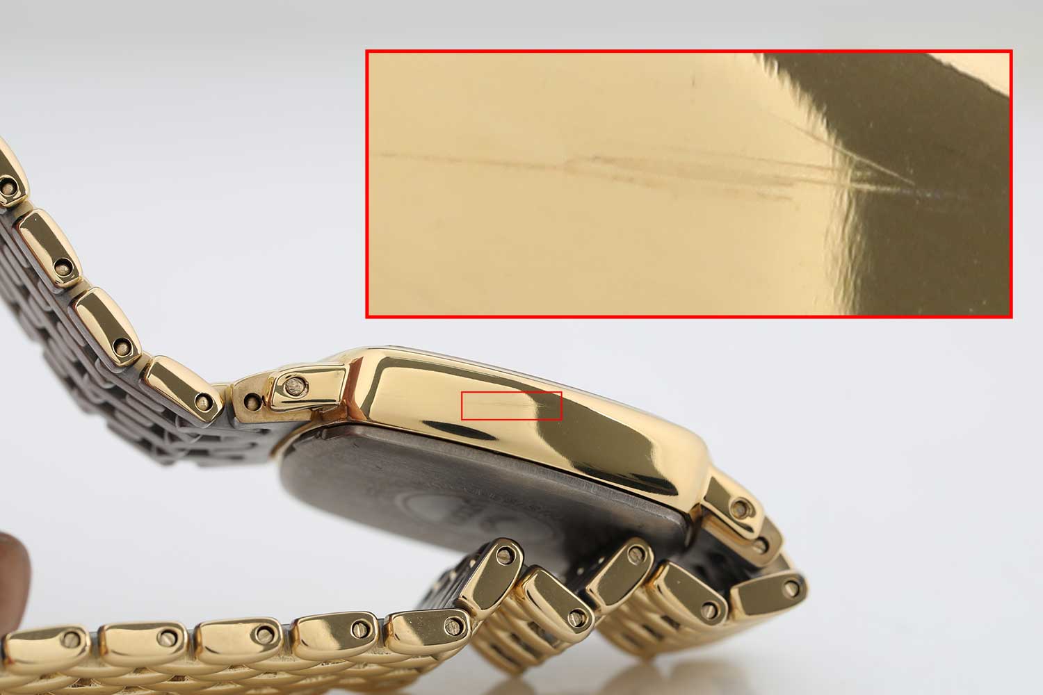Женские часы с титановым корпусом. Перламутровый циферблат с метками в виде точек и арабской цифры 12 защищен сапфировым стеклом. Браслет с раскладывающейся застежкой.
