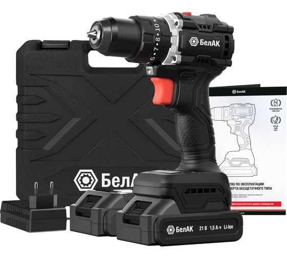 Ударная дрель-шуруповерт БелАК бесщеточная, 21V 55Hm, в кейсе, 2 АКБ (1500+2000) БАК.53315