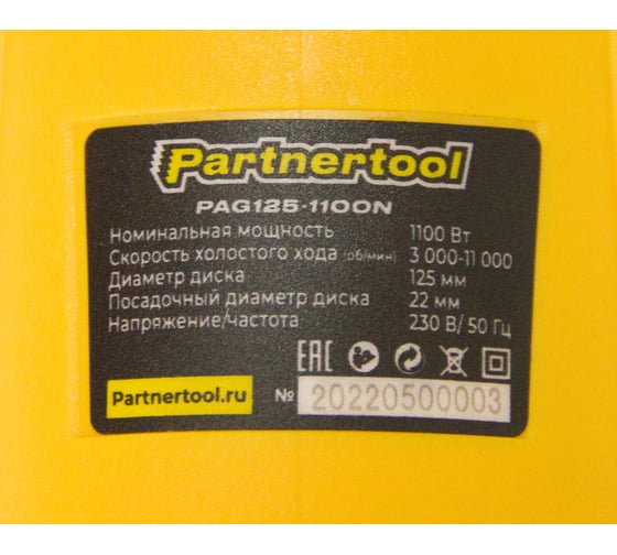 Углошлифовальная машина PARTNERTOOL PAG125-1100N