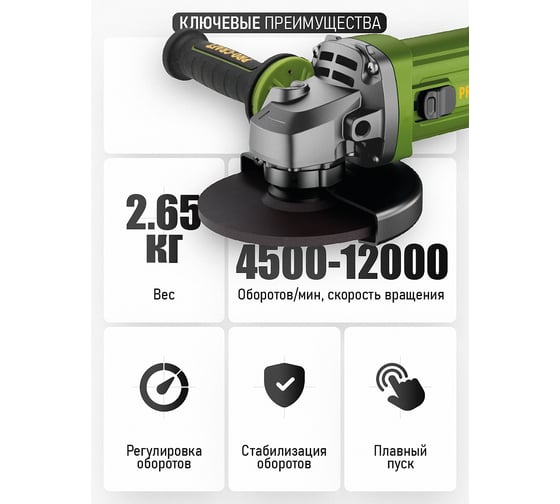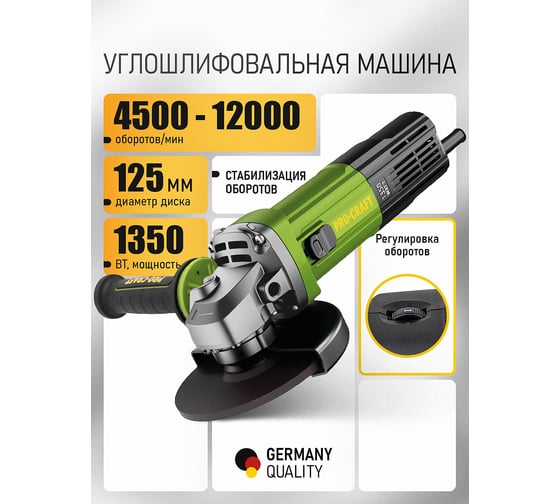 Углошлифовальная машина PROCRAFT 1350 Вт, 125 мм, 4500-1200 об/мин PW2400ES