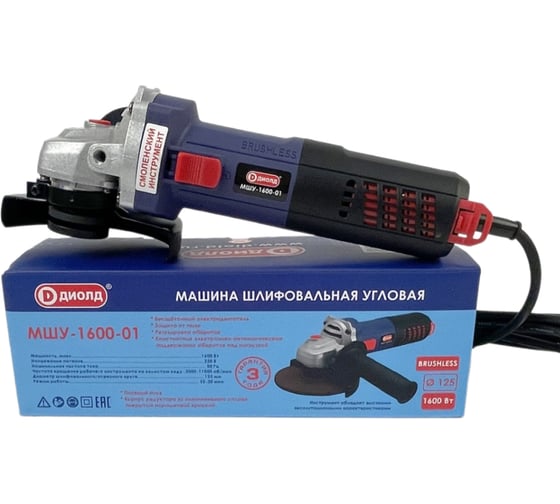 Угловая шлифовальная машина ДИОЛД бесщеточная МШУ-1600-01 с регулировкой, 125мм, 1600 Вт, 10040004