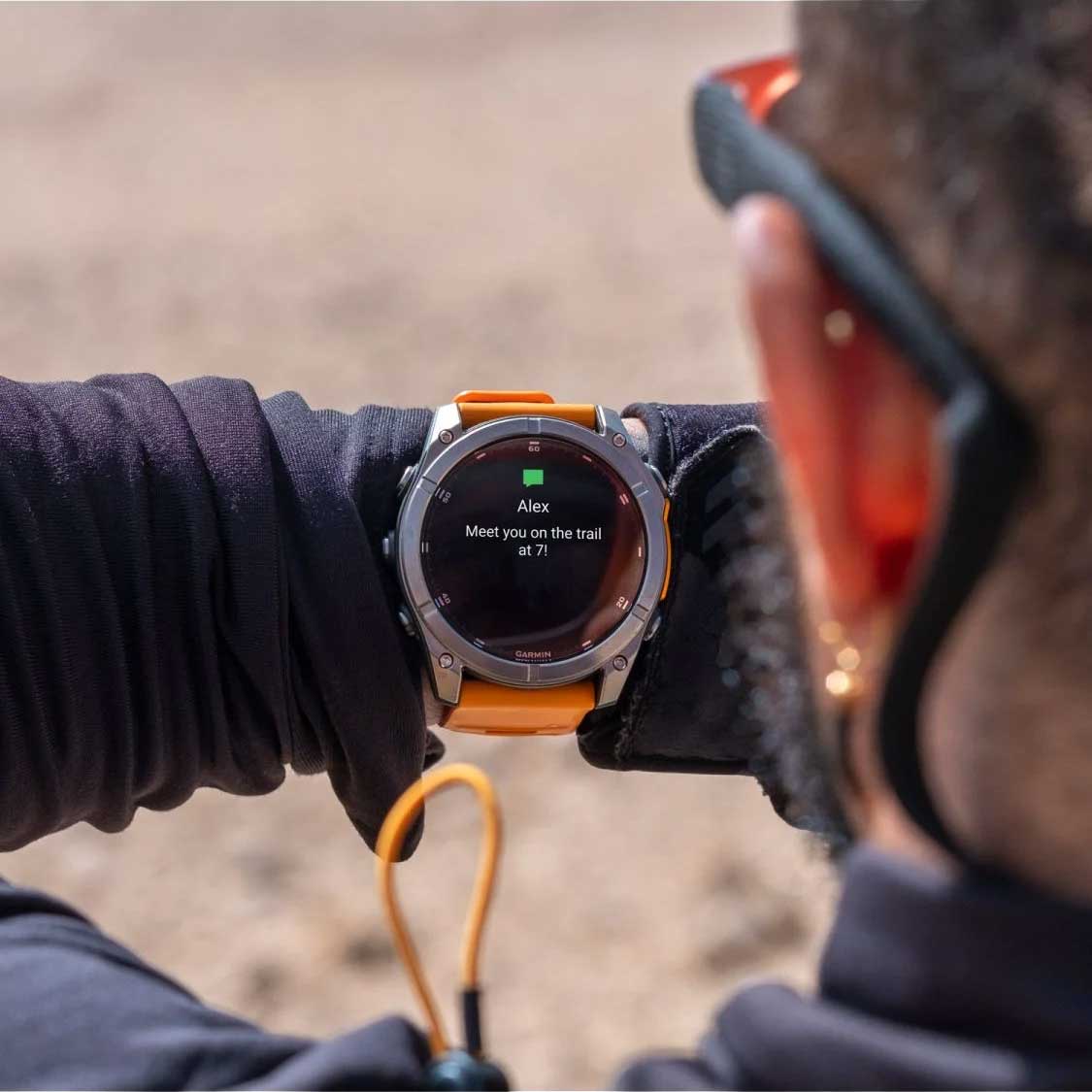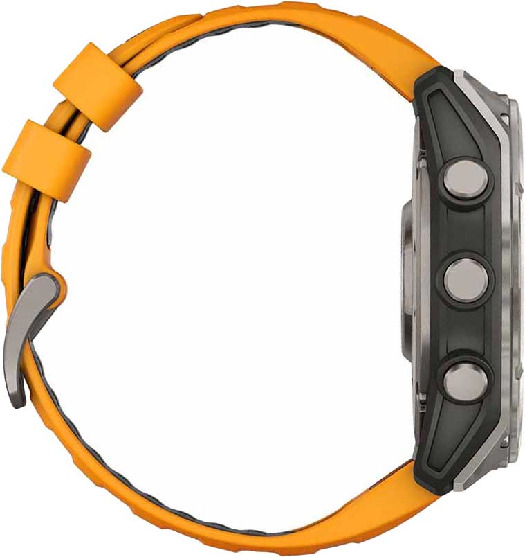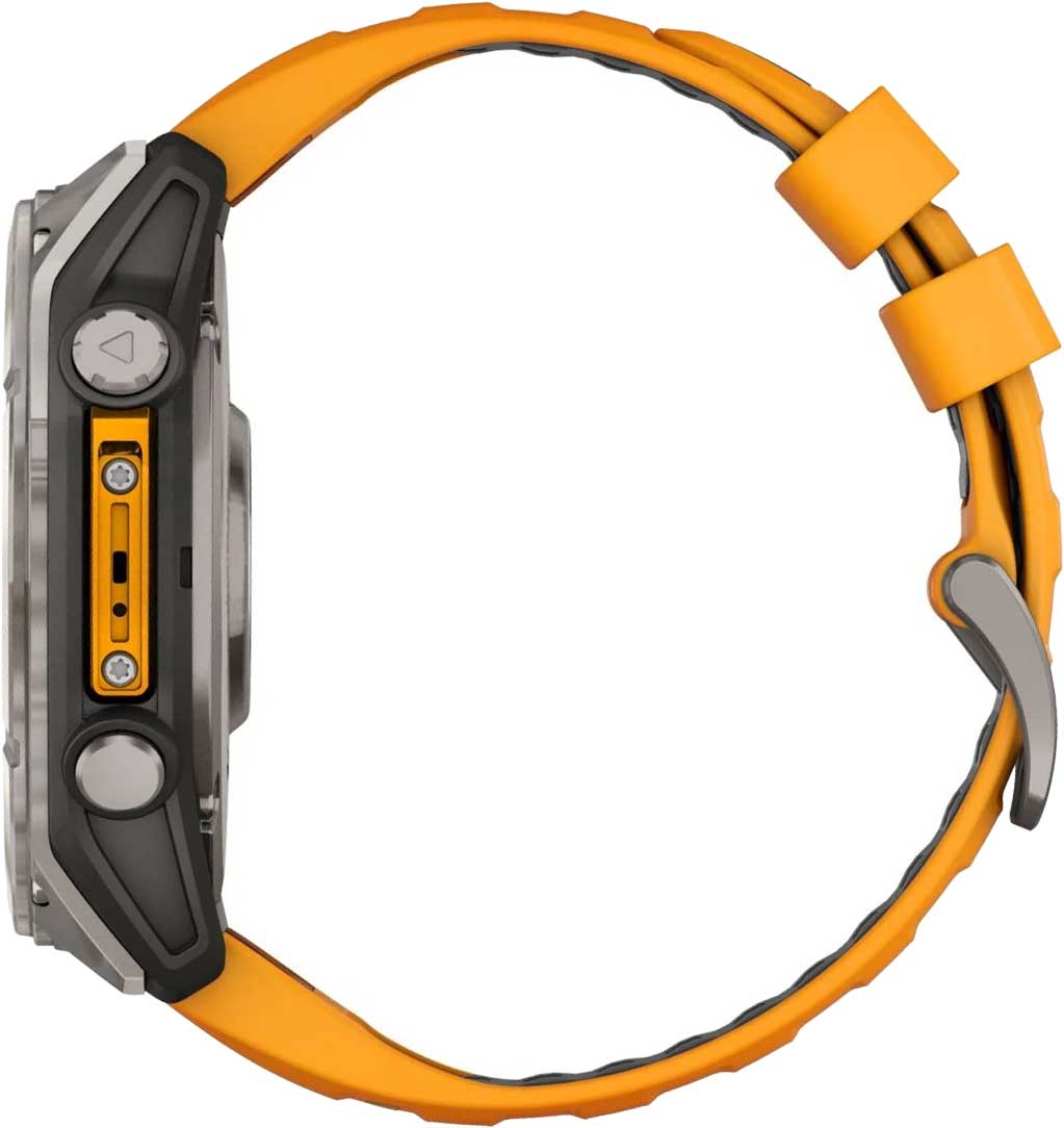 Fenix 8 Sapphire Titan. Cмарт-часы для занятий спортом. Спутниковые системы навигации GPS, GLONASS, QZSS, BEIDOU и Galileo. Профили для занятий гольфом, плаванием, бегом, велоспортом, силовые тренировки, дайвинг и др. Отслеживание активности: шаги, калории, пульс, сон и др. Цветной сенсорный AMOLED циферблат 1,4‘’ (35,56мм) разрешением 454x454. Дополнительные функции: 12-ти и 24-х часовой формат времени, секундомер, SPLIT-хронограф, таймер, будильник, время восхода/захода солнца, автоматический переход на зимнее и летнее время. Датчики: барометрический альтиметр, компас, гироскоп, термометр, акселерометр, Pulse Ox (показывает уровень кислорода в крови), датчик освещенности, глубиномер (до 40м).
