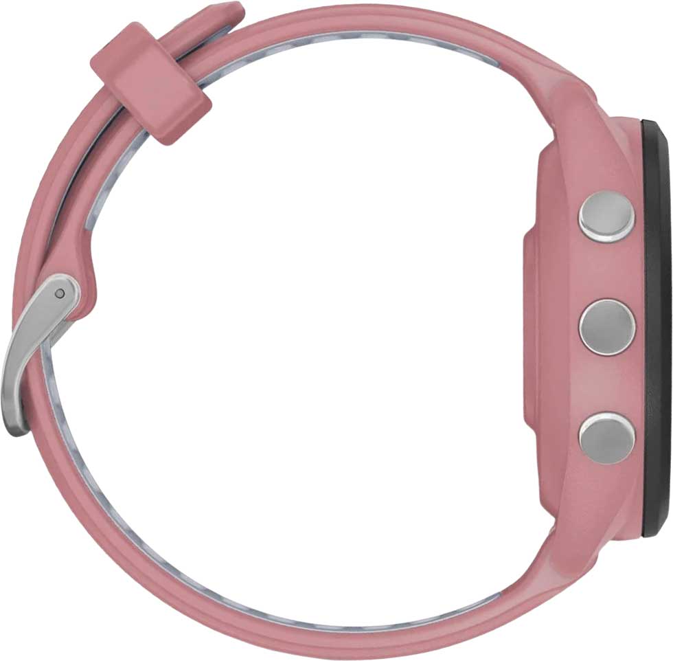 Forerunner 265S. Женские часы с мультиспортивными профилями: триатлон, велоспорт, бег, плавание, гребля, туризм и др. Создание собственных тренировок и возможность загружать их из спортивного сообщества Garmin Connect. Garmin Elevate - оптический датчик пульса на нижней стороне часов испускает свет в запястье пользователя с помощью светодиодов и измеряет количество света, которое рассеивается кровотоком. Отслеживание активности: шаги, калории, пульс и сон.