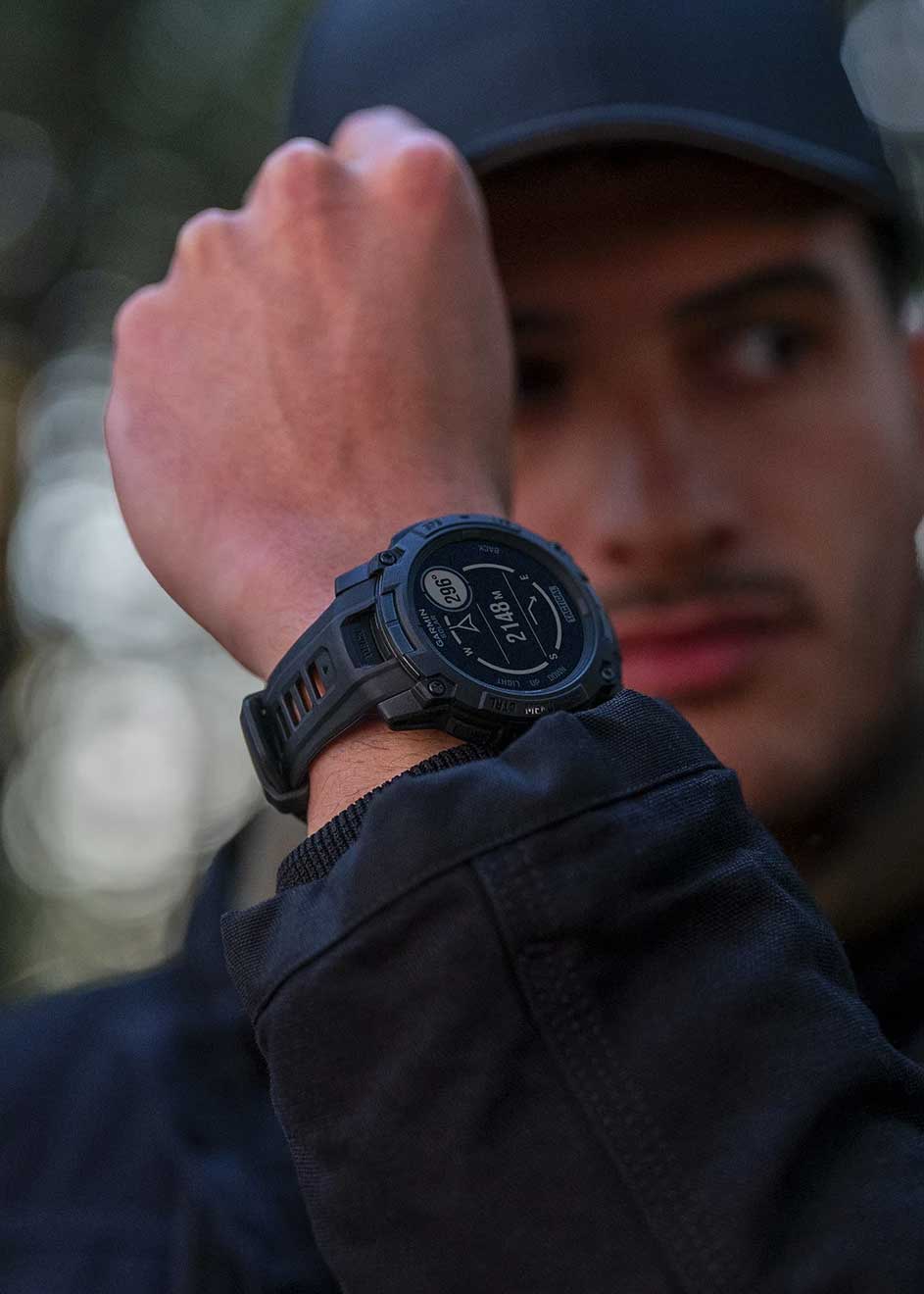 Instinct 3 Solar Tactical. Мужские смарт-часы. Противоударный корпус изготовлен в соответствии с военными стандартами MIL-STD-810. Питание от солнечной энергии. Спутниковые системы навигации GPS, GLONASS и Galileo. Профили для занятий гольфом, плаванием, бегом, велоспортом, отдыхом на природе и др. Отслеживание активности: шаги, калории, пульс и сон.