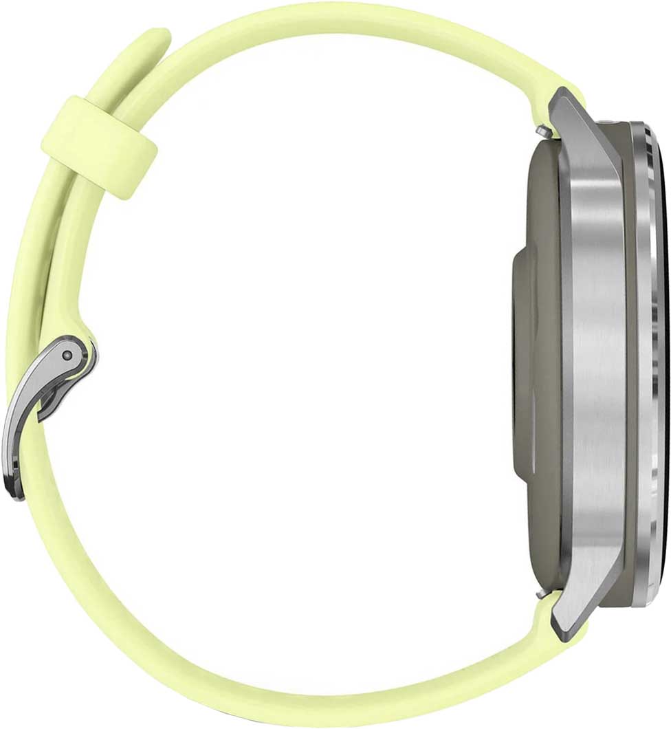 Цветной сенсорный AMOLED циферблат 1,4‘’ (35,3мм) разрешением 454x454. Дополнительные функции: 12-ти и 24-х часовой формат времени, второй часовой пояс, секундомер, SPLIT-хронограф, таймер, будильник, время восхода/захода солнца, автоматический переход на зимнее и летнее время.