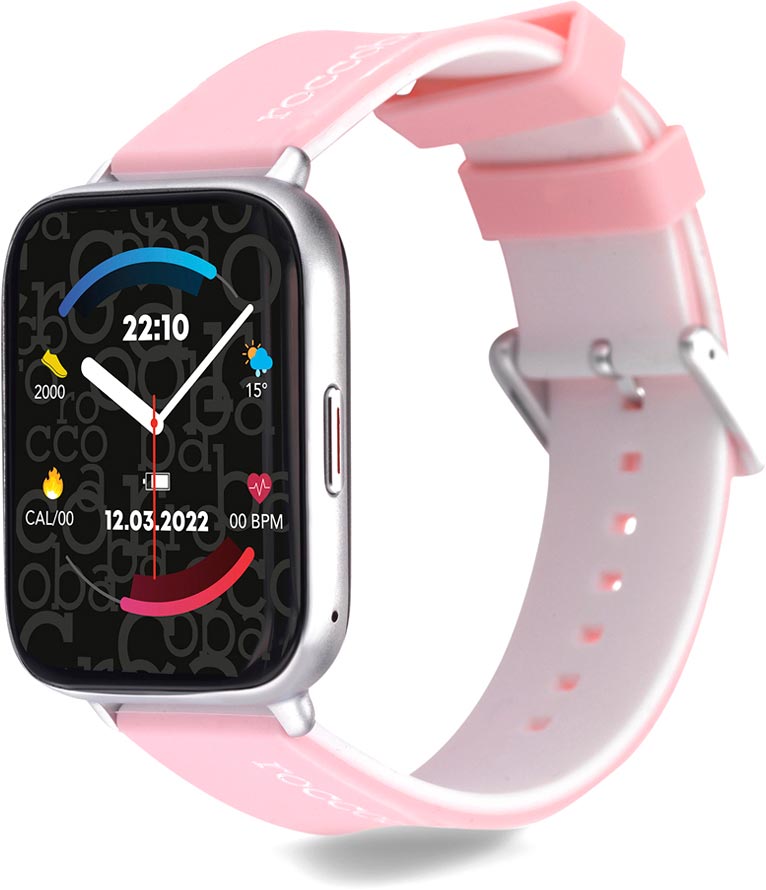 Смарт-часы с мультиспортивными режимом. Алюминиевый прямоугольный корпус. Отслеживание активности: шаги, калории, пульс, сон, ЧСС, измерение температуры тела, давление и уровень кислорода в крови. Дополнительные функции: секундомер, SPLIT-хронограф, будильник. Синхронизация со смартфоном через Bluetooth: виджеты и приложения, уведомления и оповещения, календарь, погода, управление камерой и воспроизведением музыки, поиск телефона. Перезаряжаемый аккумулятор. Индикатор заряда аккумулятора. Защищены по стандарту IP67. Каучуковый ремешок с классической застежкой.