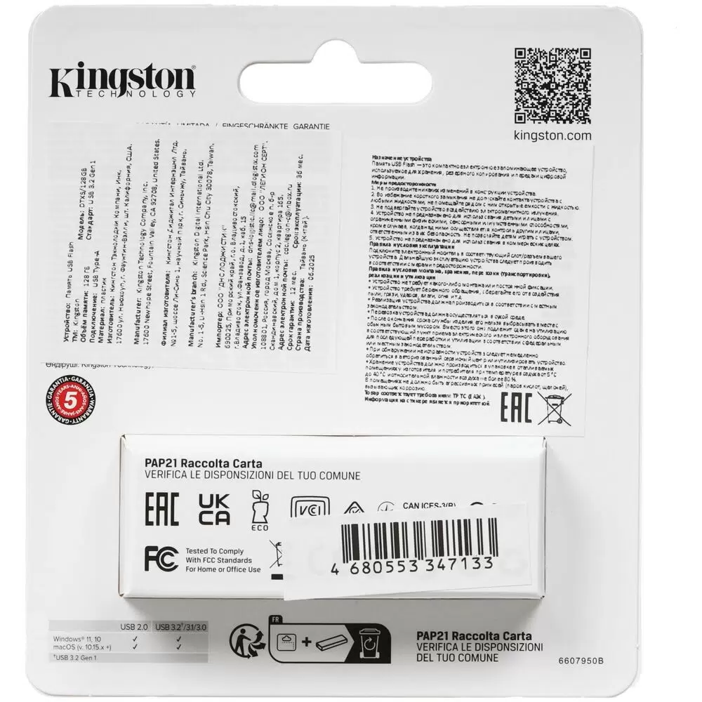 - Артикул производителяDTXS/128GB