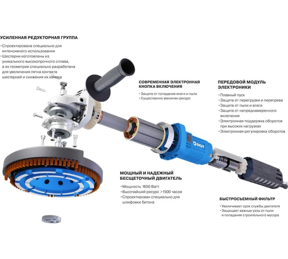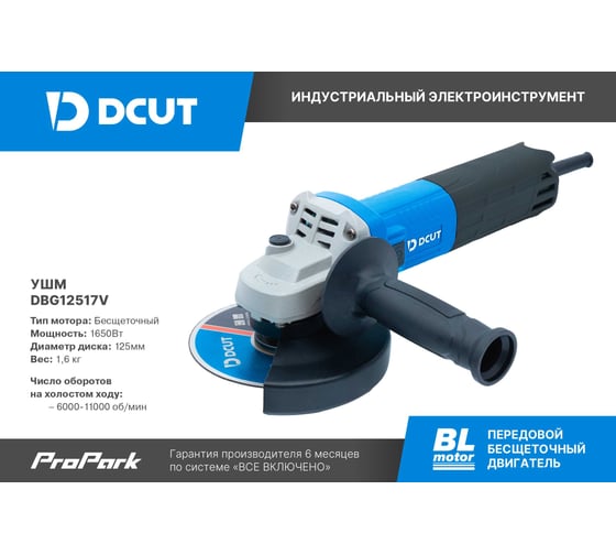 УШМ бесщёточная DCUT 125мм с регулировкой скорости вращения, 1650Вт, 6000-11000 об/мин SP05 DBG12517V-SP05