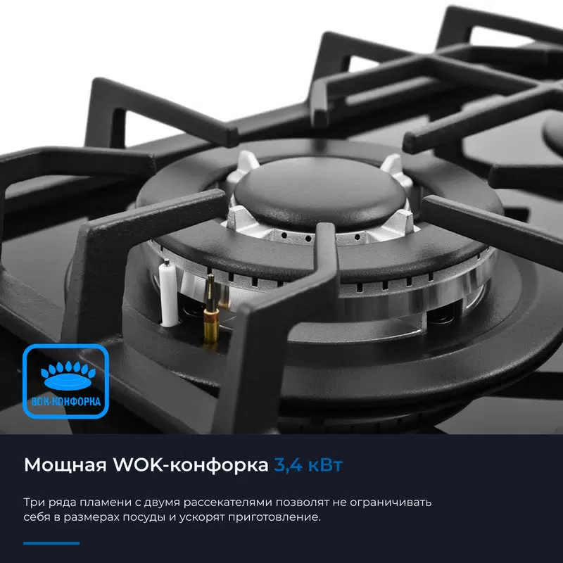 - Мощность конфорок1 кВт; 1,8 кВт; 1,8 кВт; 3,4 кВт