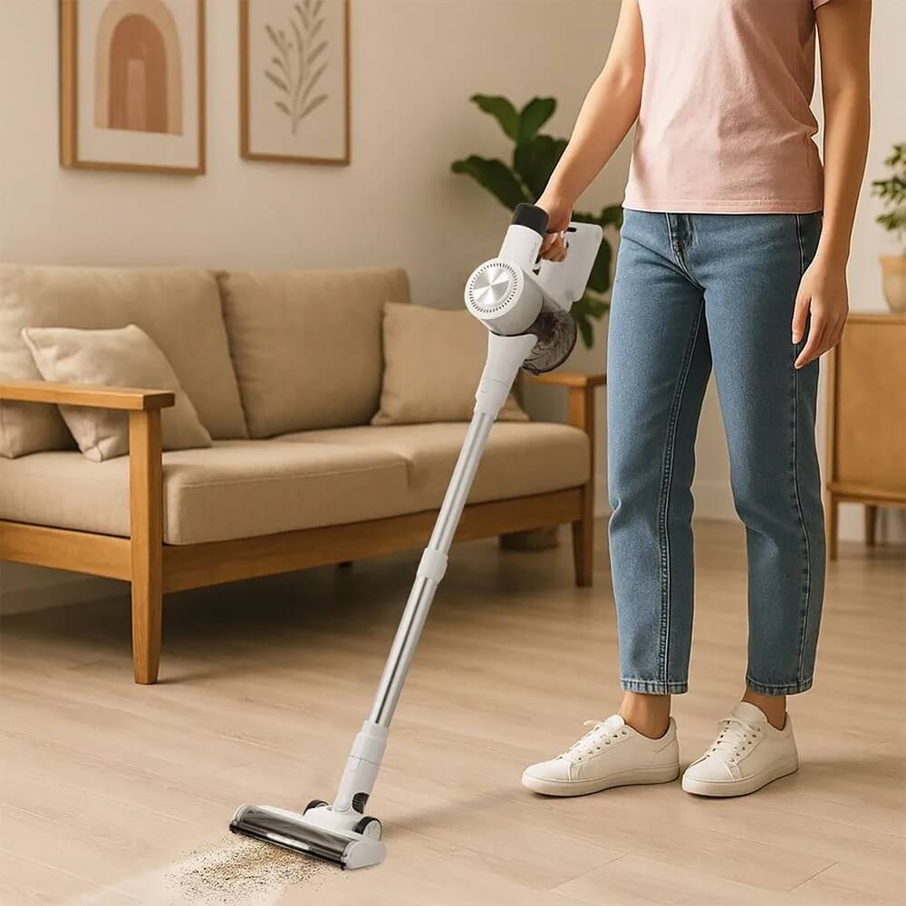 - Индикациявключения; заполненности пылесборника; заряда аккумулятора; разрядки аккумулятора
